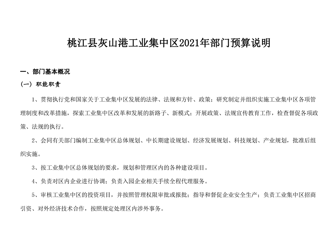 桃江县灰山港工业集中区管理委员会2021年度部门预算公开