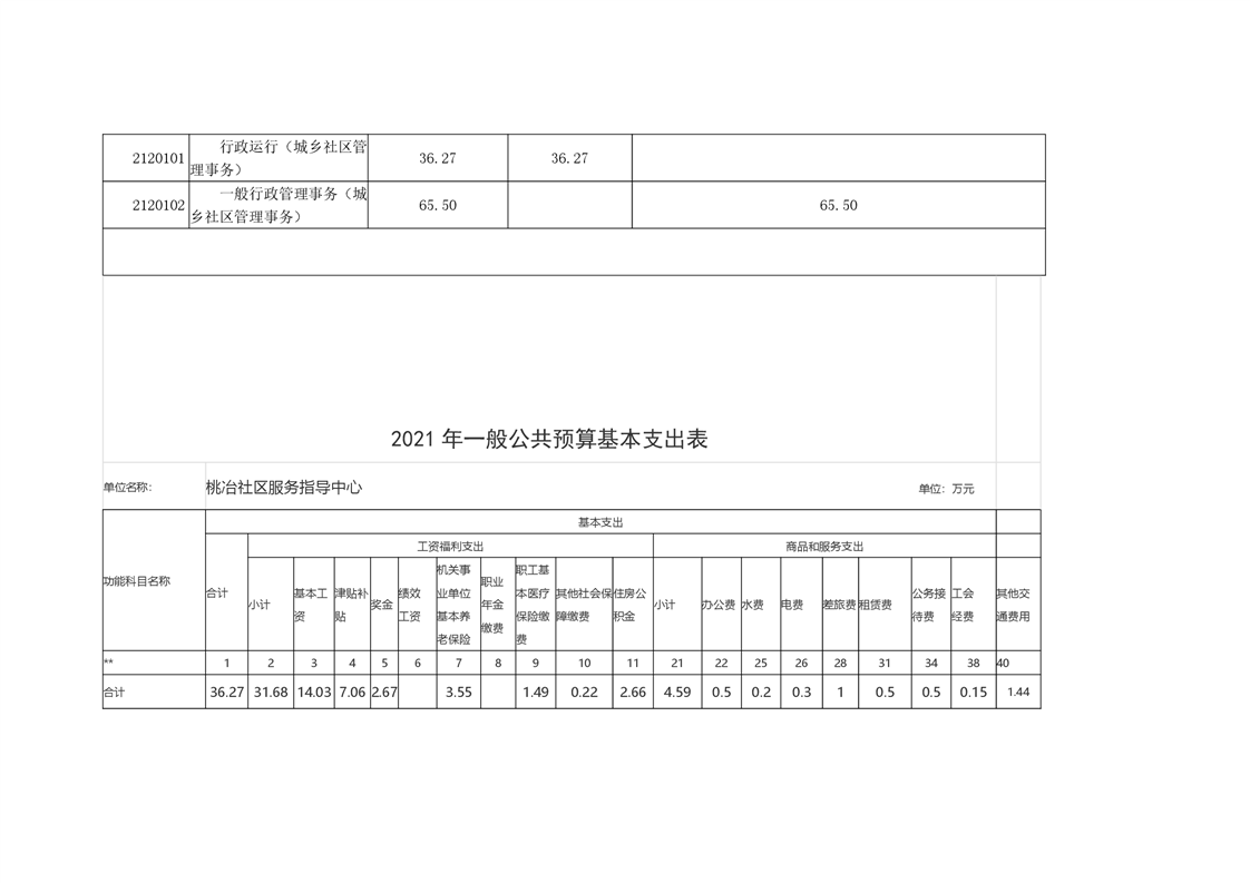 2021年桃江县桃冶社区服务指导中心部门预算公开