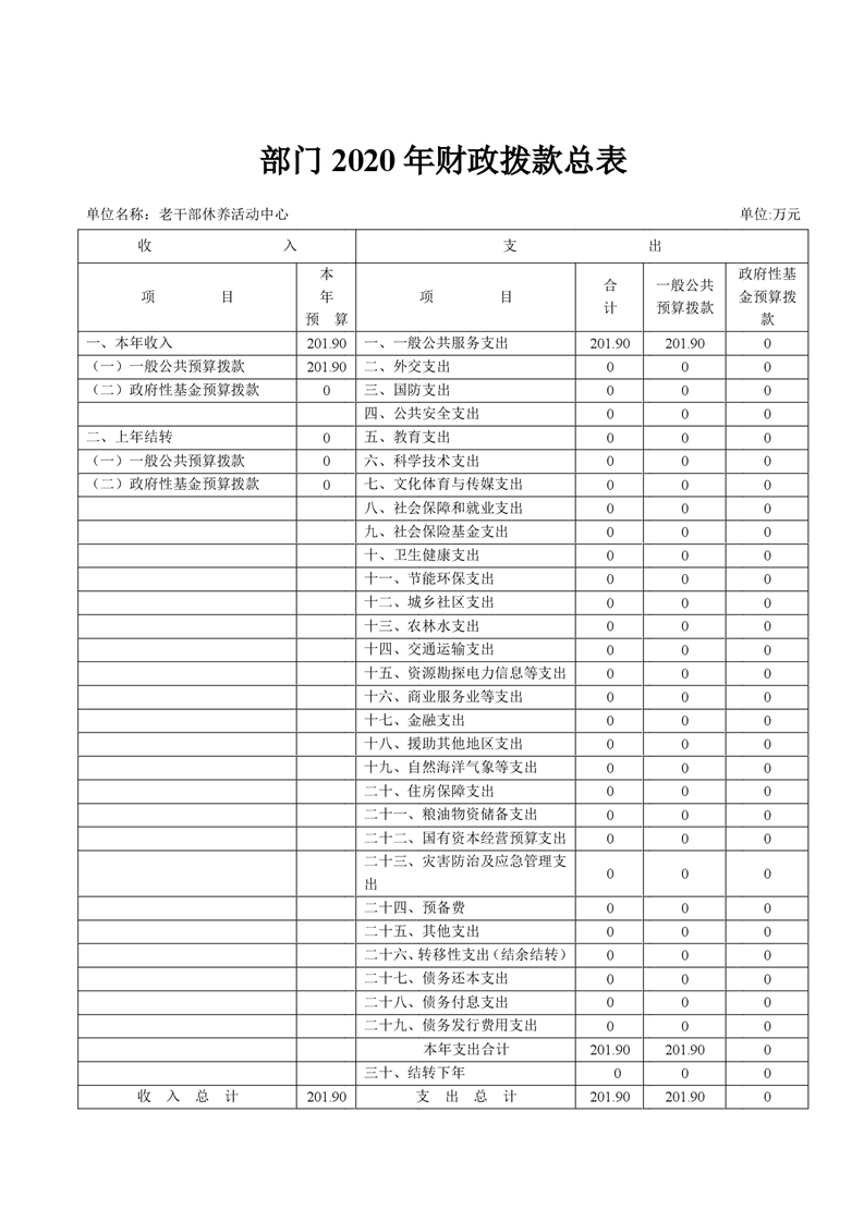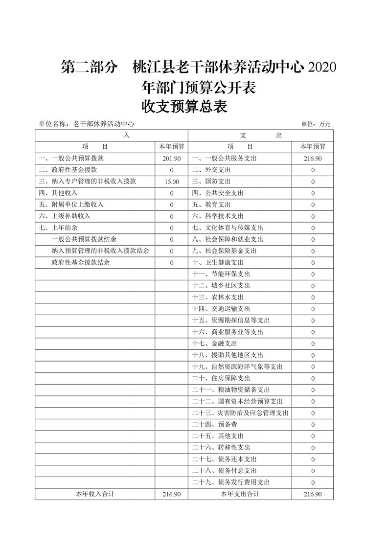 2020年度 桃江县老干部休养活动中心部门预算公开