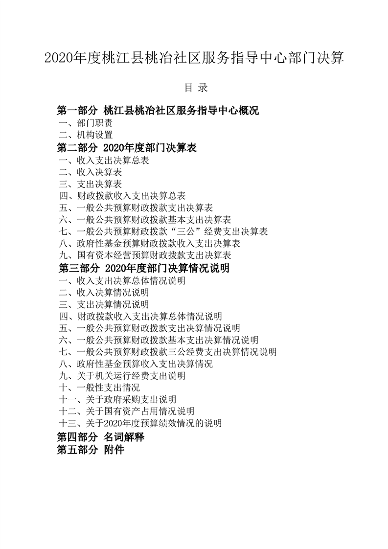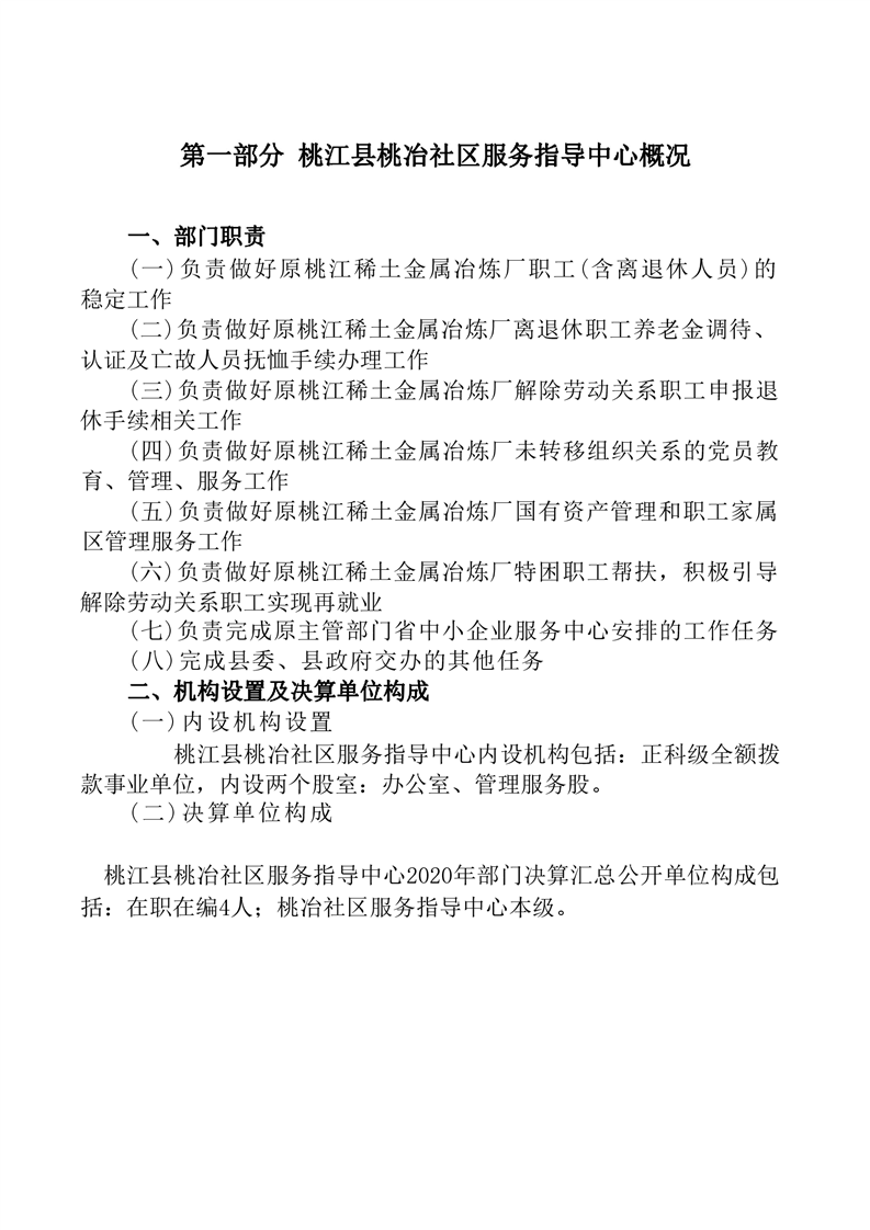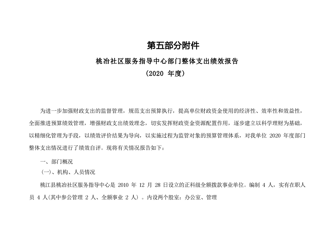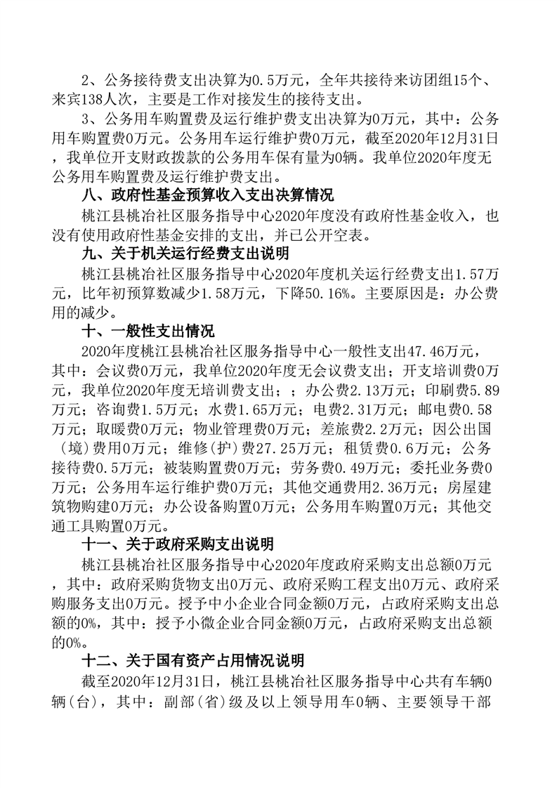 桃冶社区服务指导中心2020年度部门决算公开说明