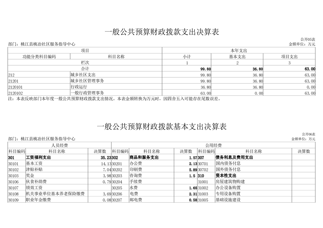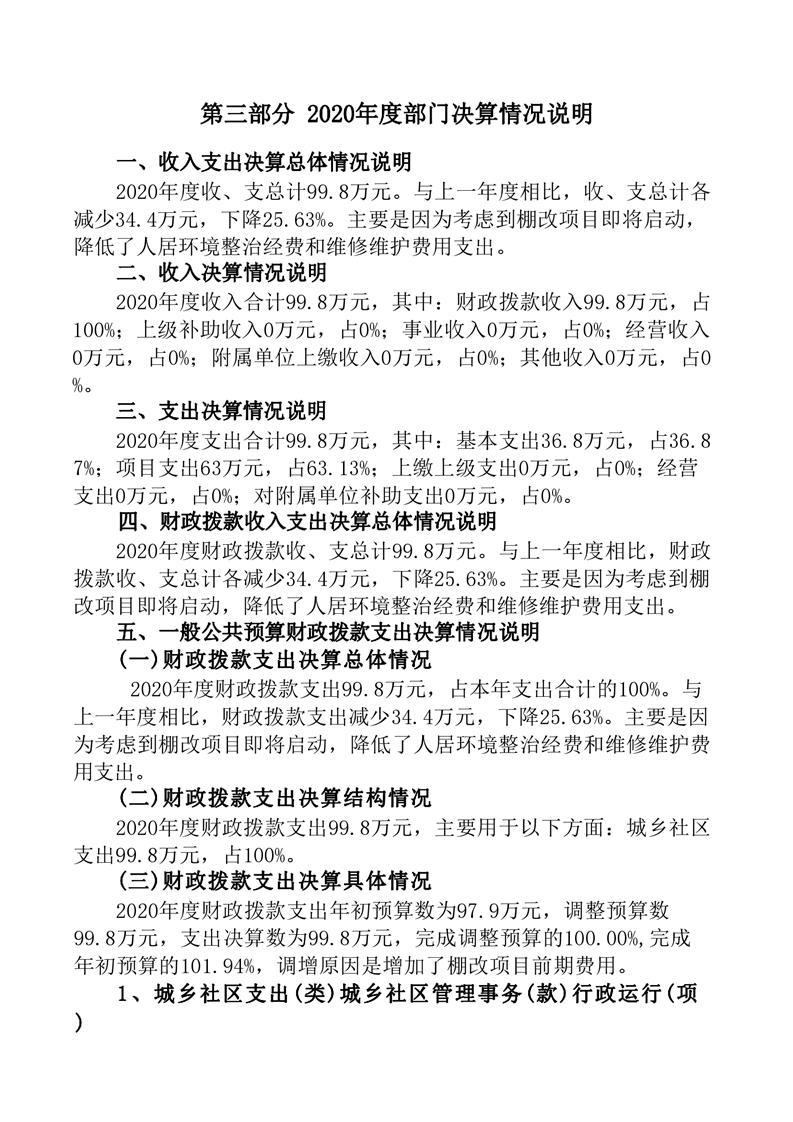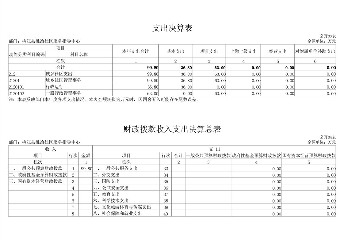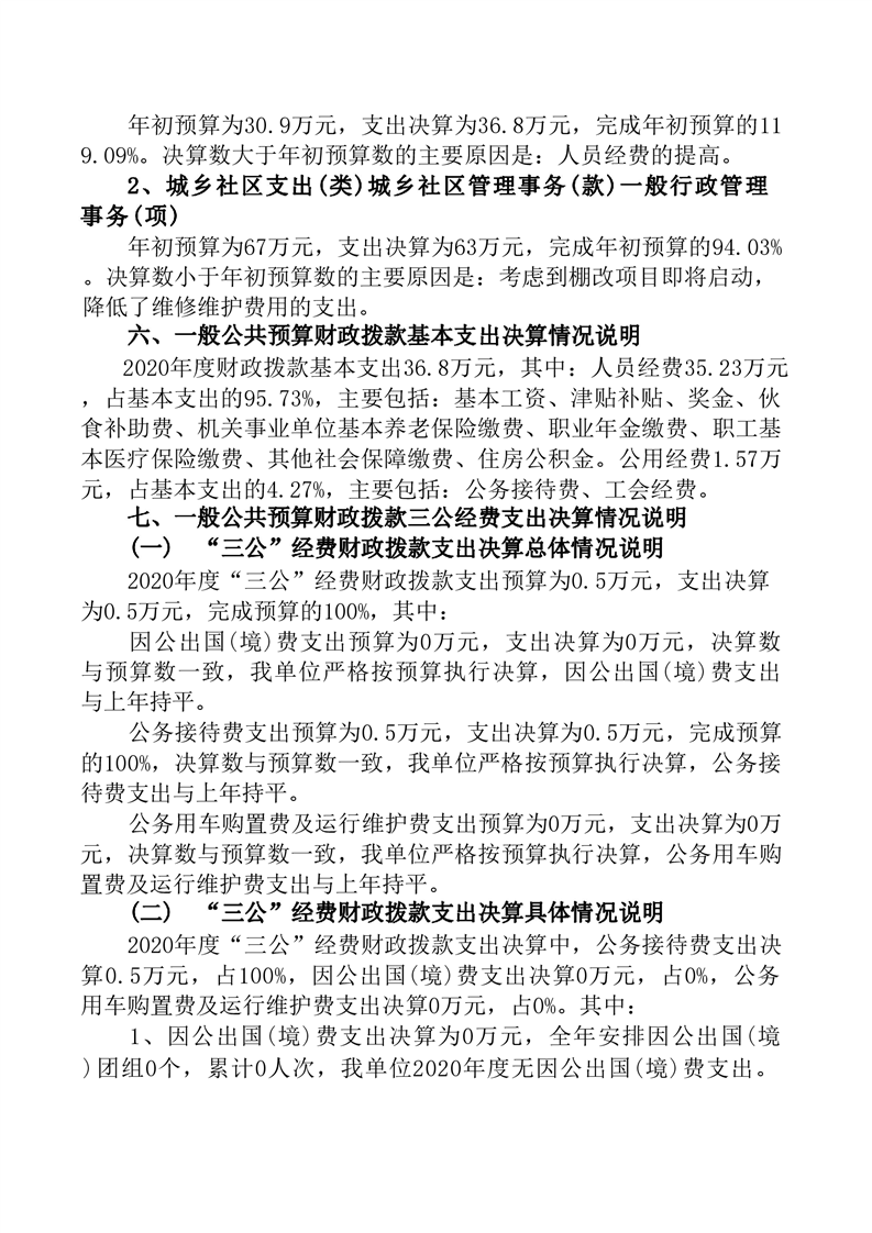 桃冶社区服务指导中心2020年度部门决算公开说明