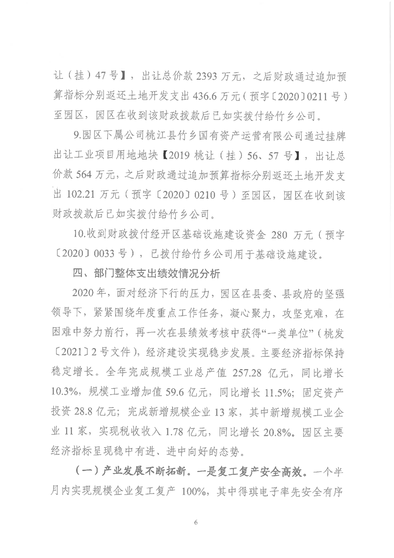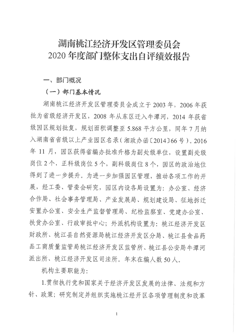 桃江经济开发区2020年度部门整体支出自评绩效报告