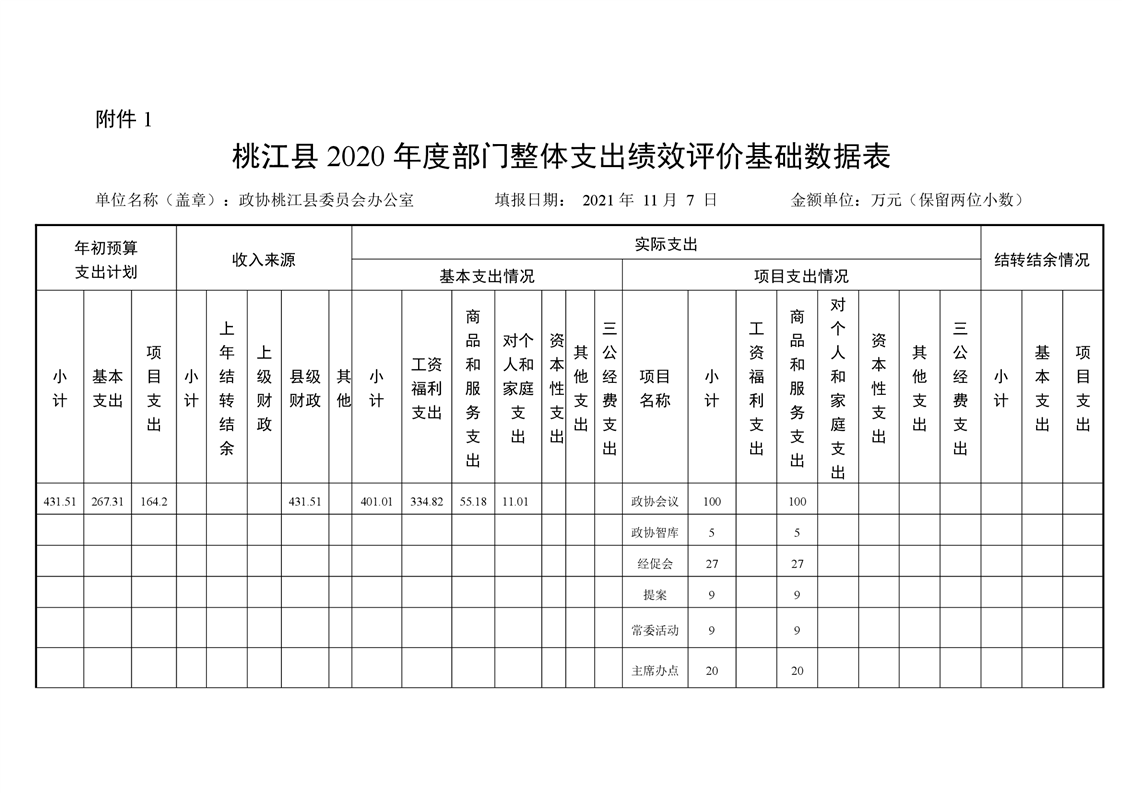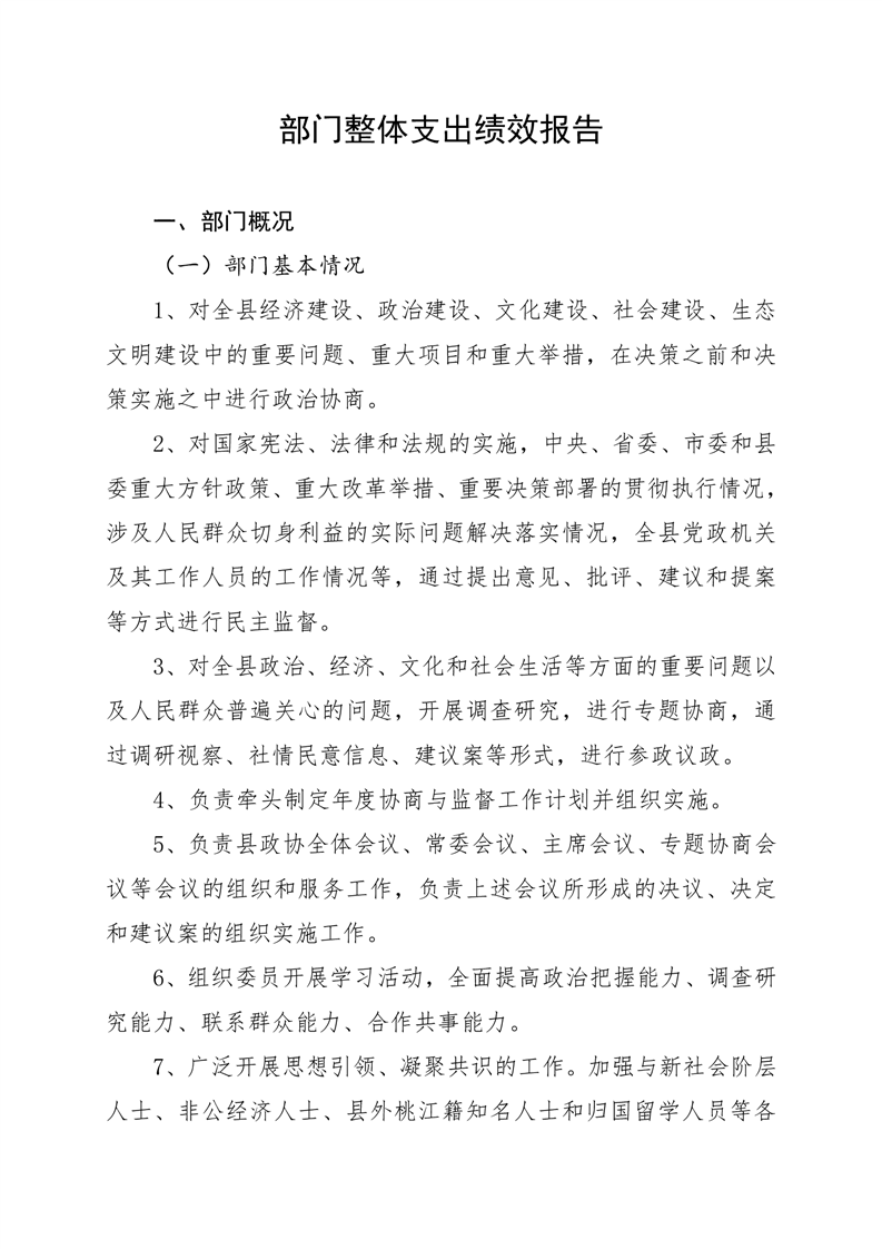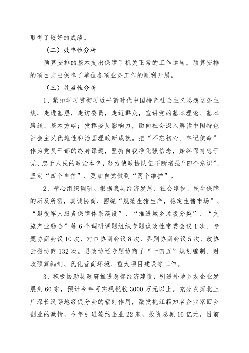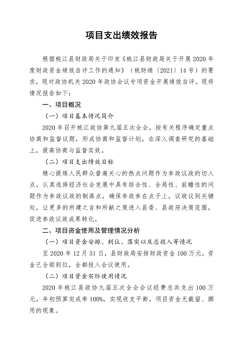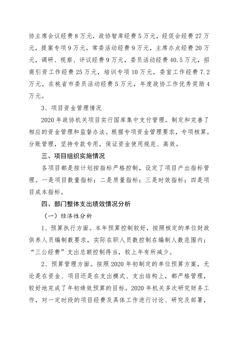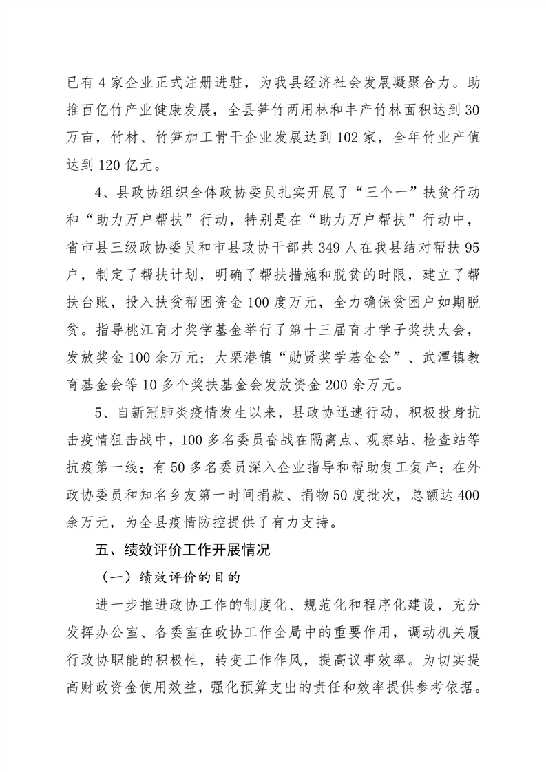 2020年桃江县政协机关绩效自评报告