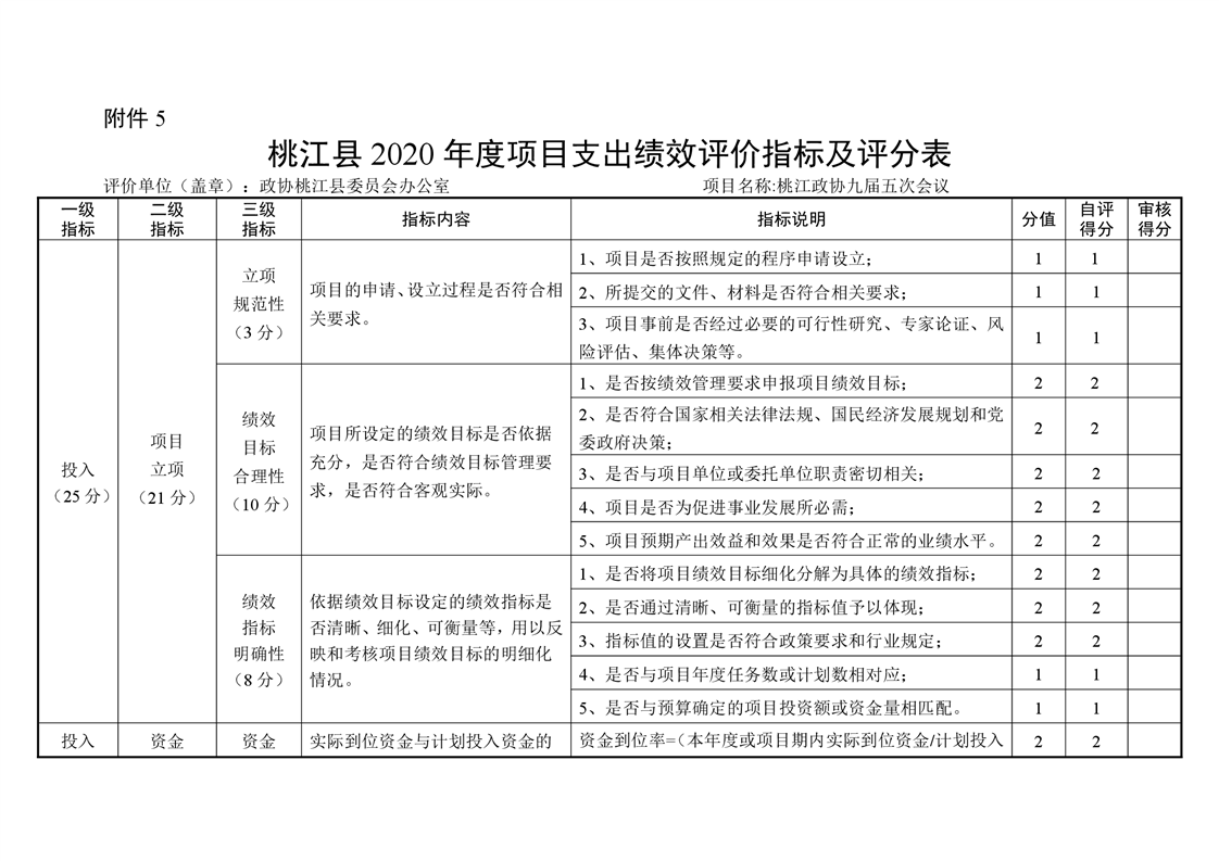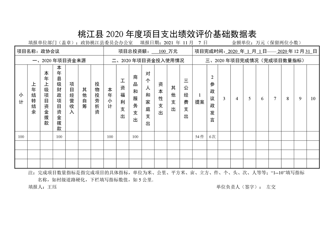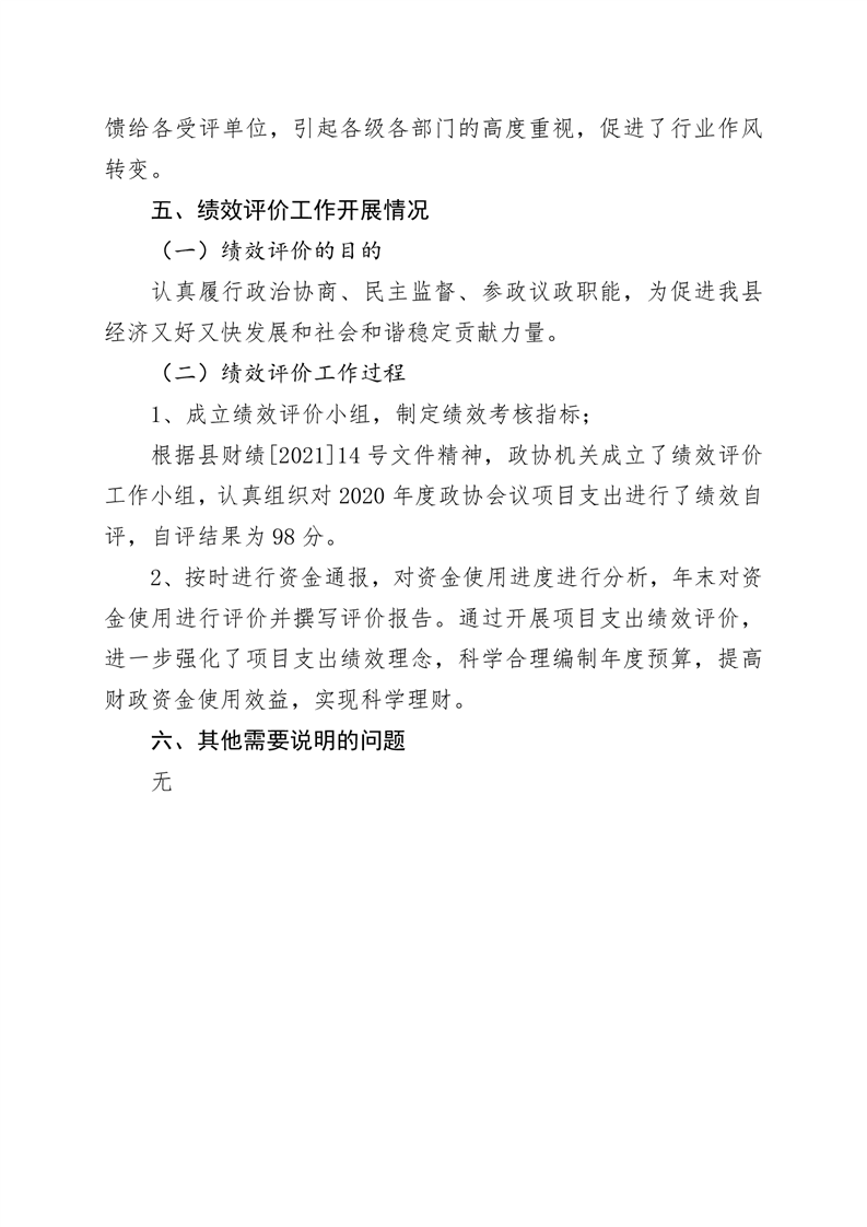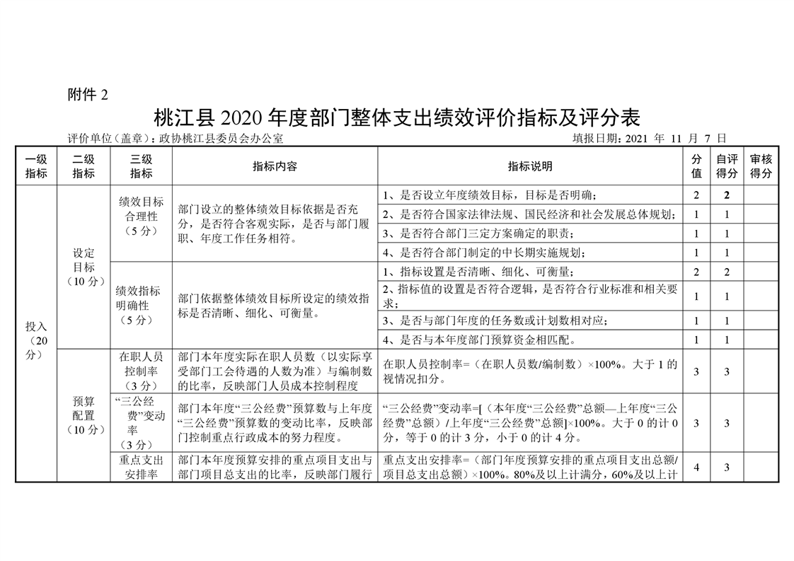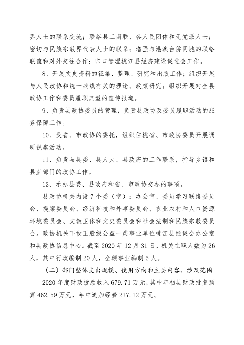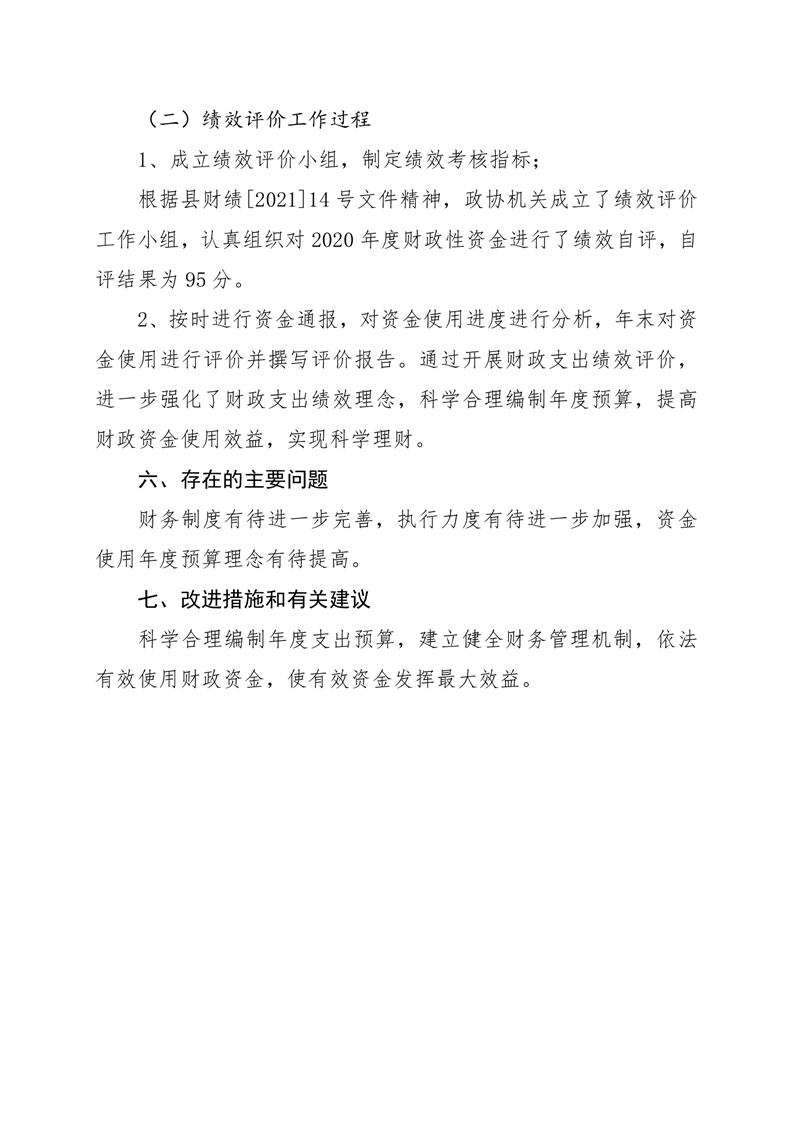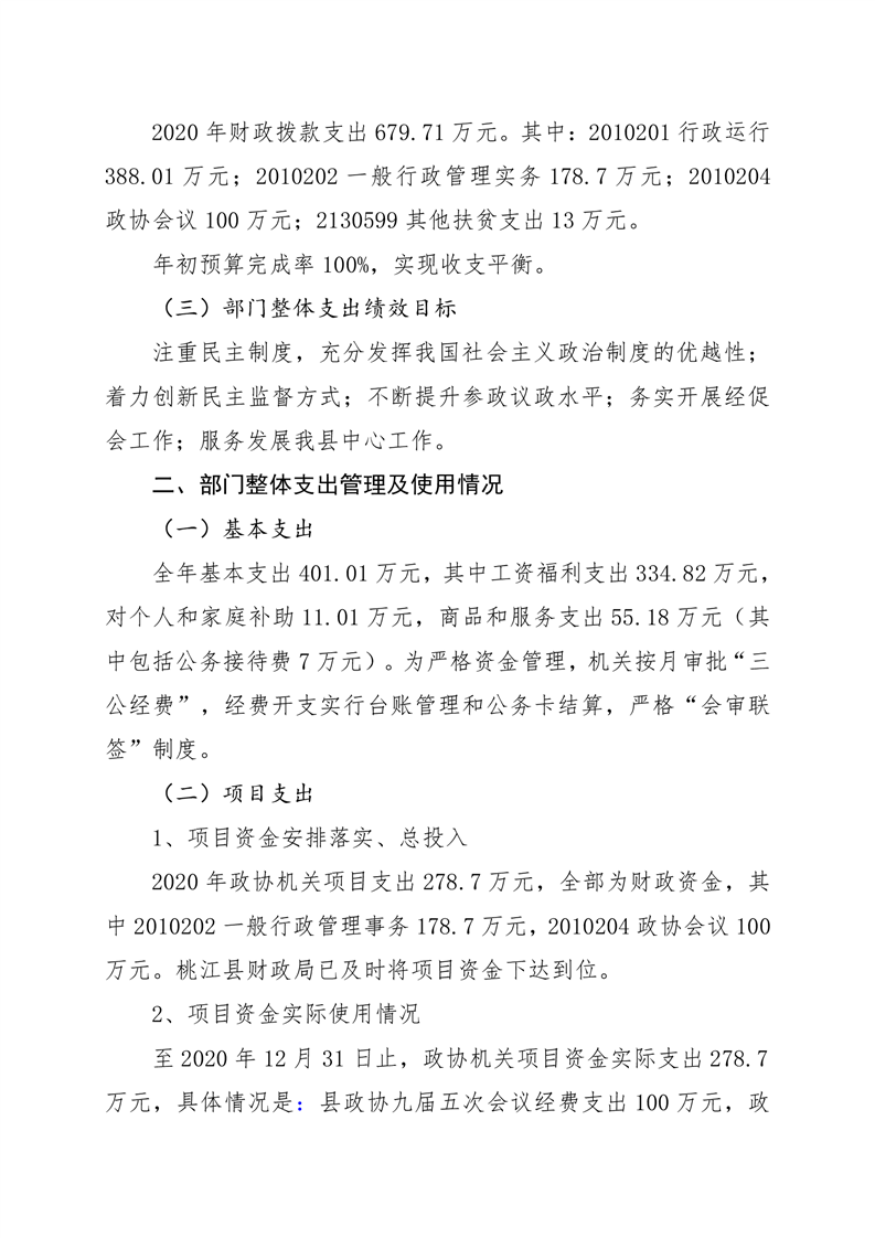 2020年桃江县政协机关绩效自评报告