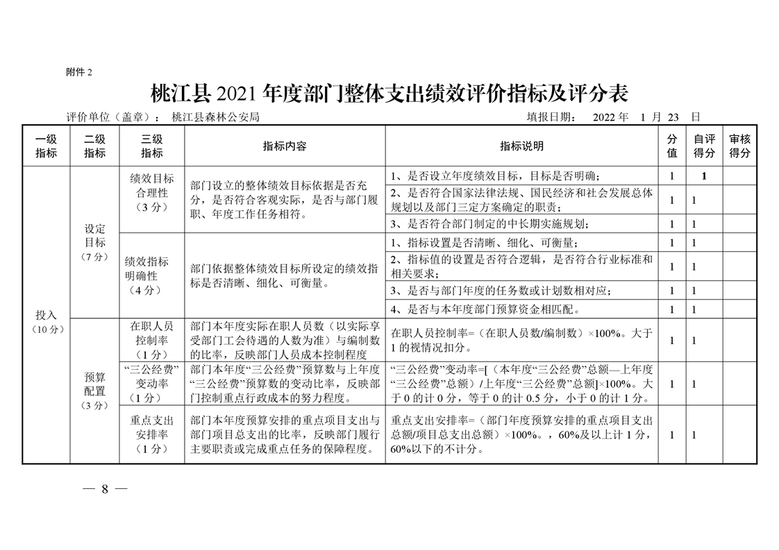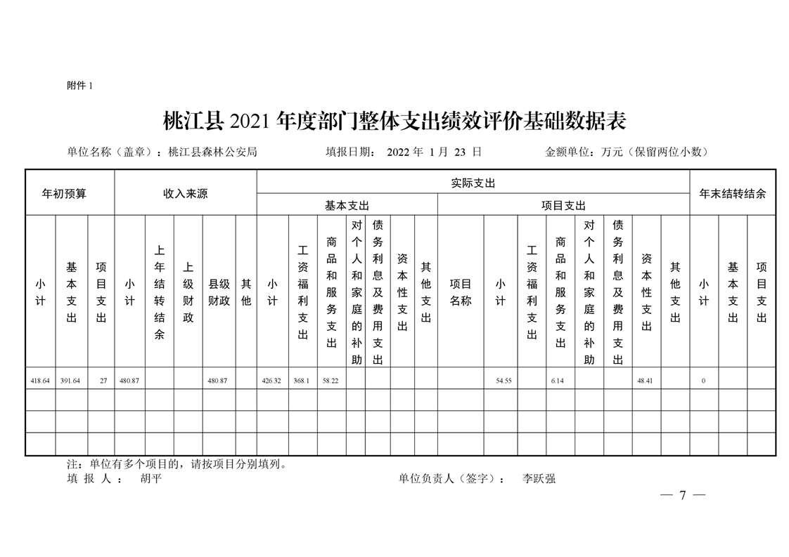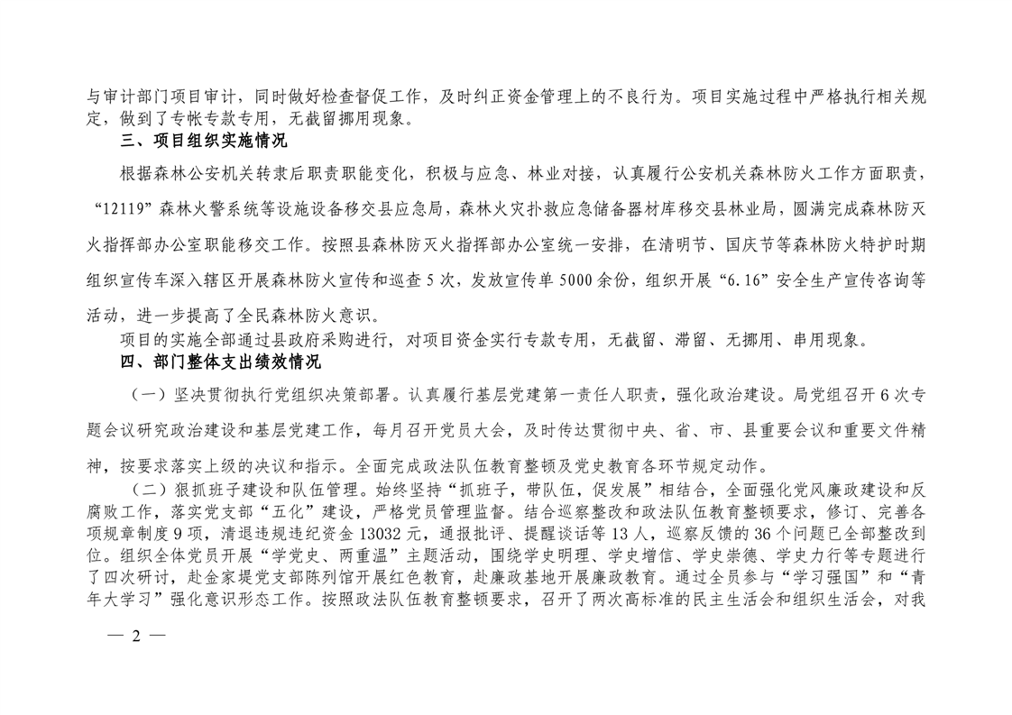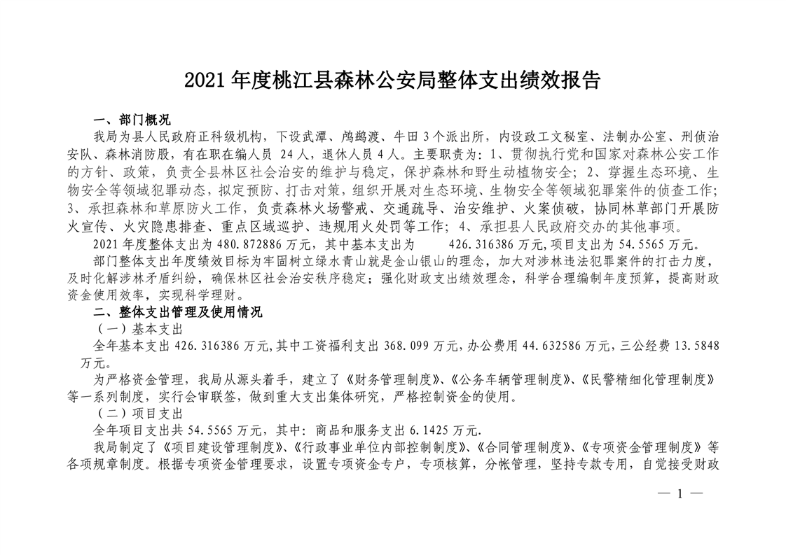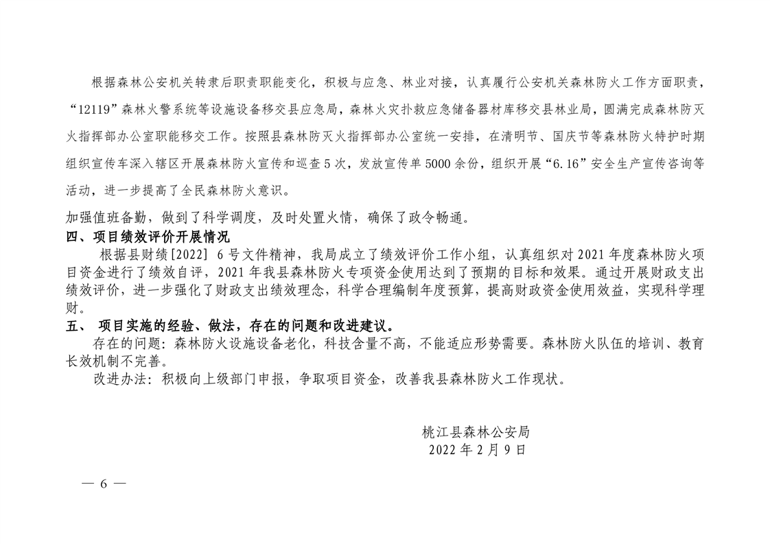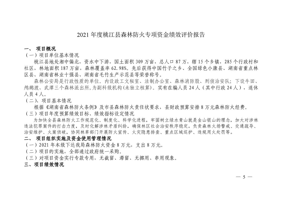 2021年桃江县森林公安局绩效自评公示