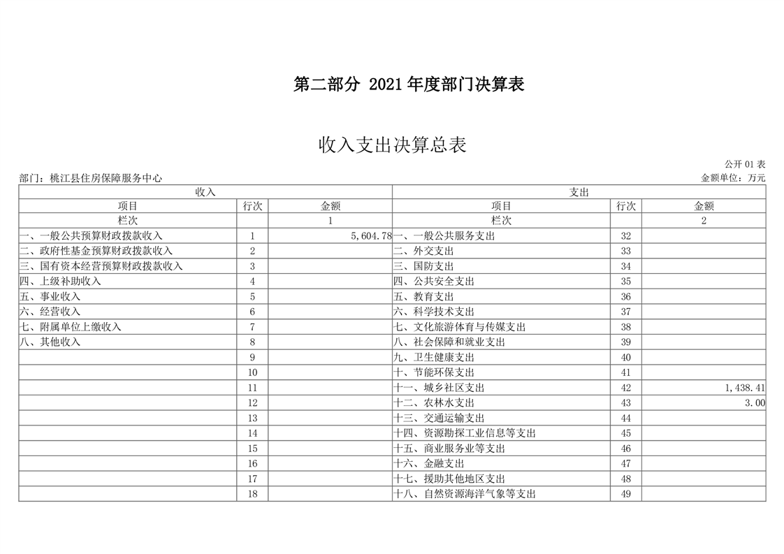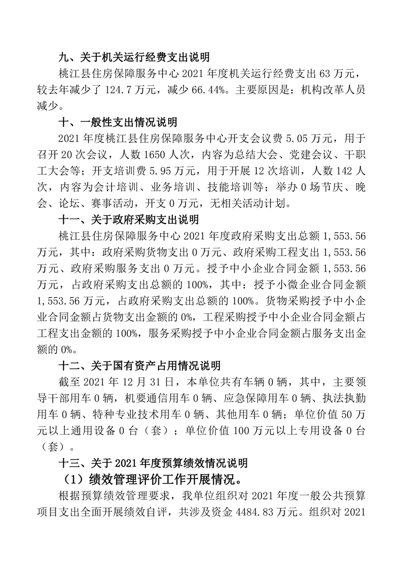 桃江县住房保障服务中心2021年部门决算公开说明