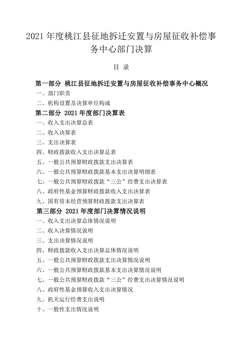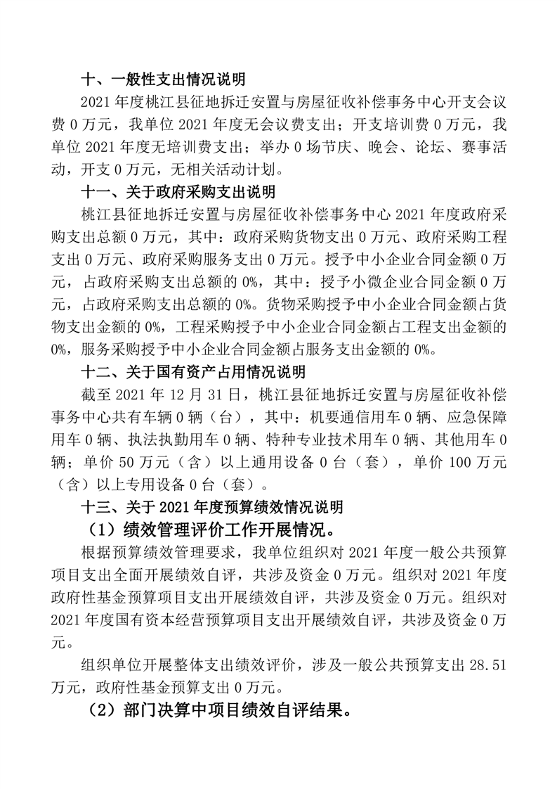2021年度桃江县征地拆迁安置与房屋征收补偿事务中心部门决算