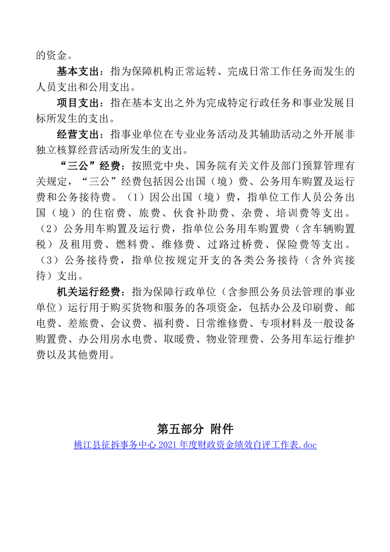 桃江县征拆事务中心2021年度财政资金绩效自评工