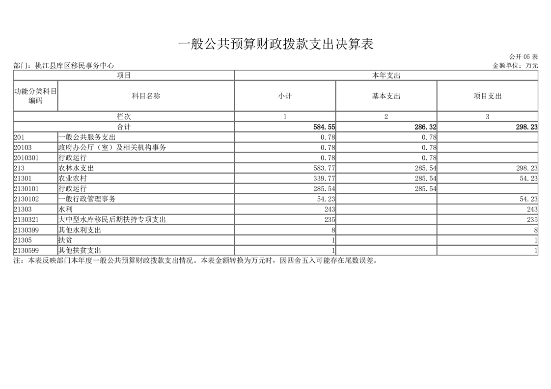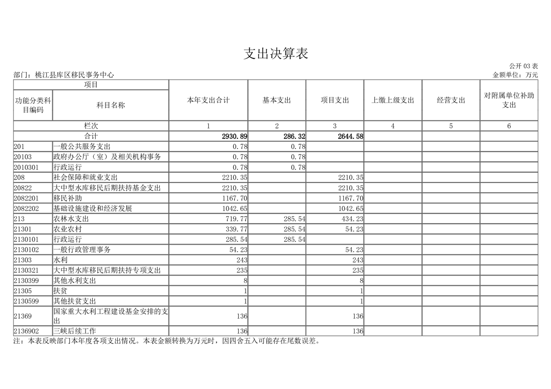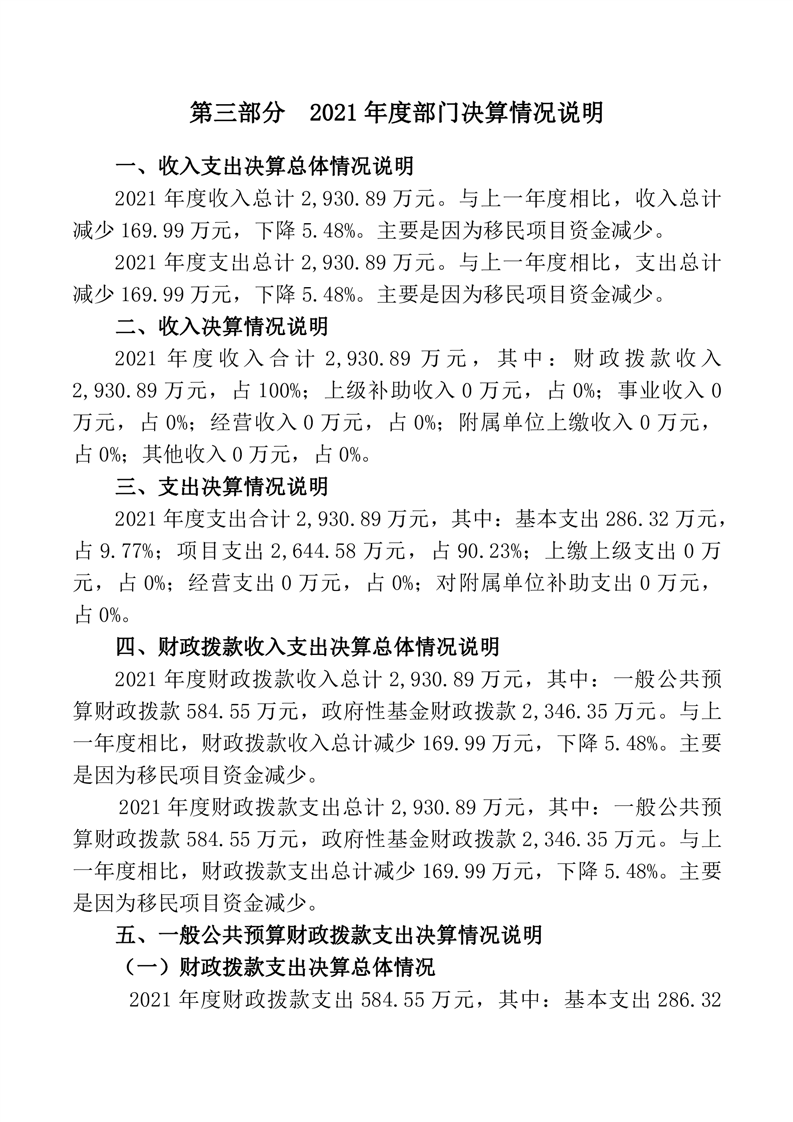 桃江县库区移民事务中心2021年度部门决算公开