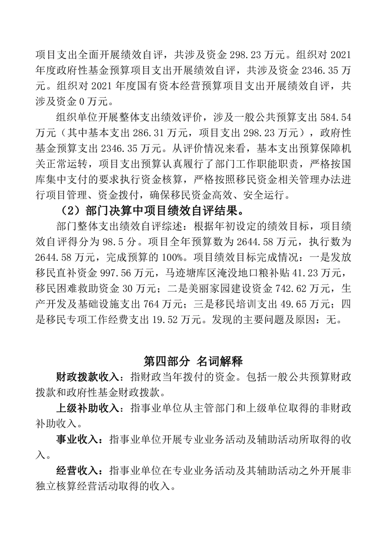 2021年度中央水库移民扶持基金绩效自评报告.docx