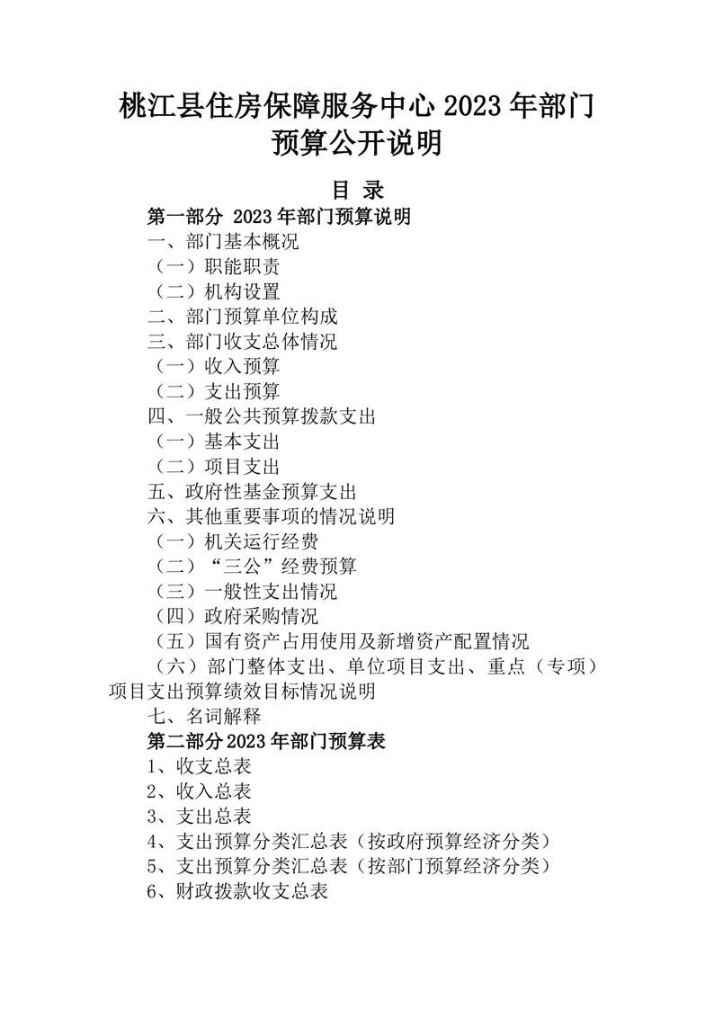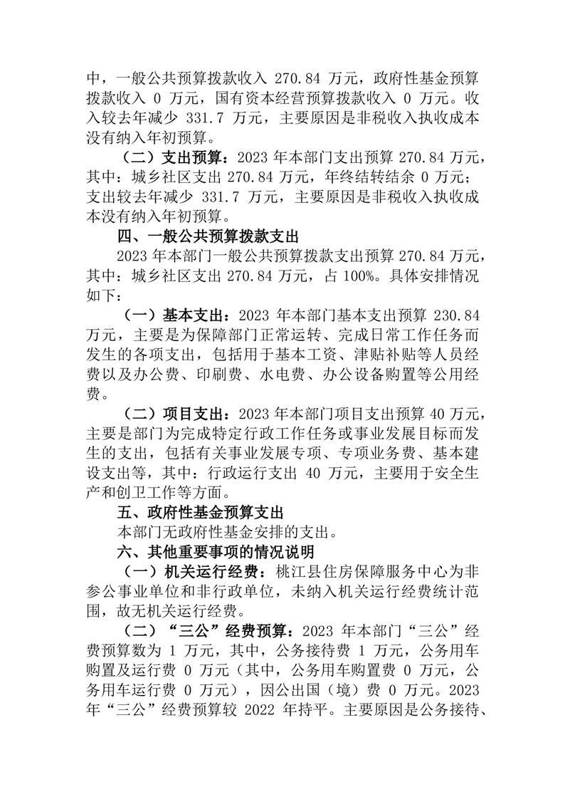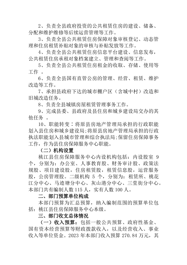 桃江县住房保障服务中心2023年部门预算公开说明