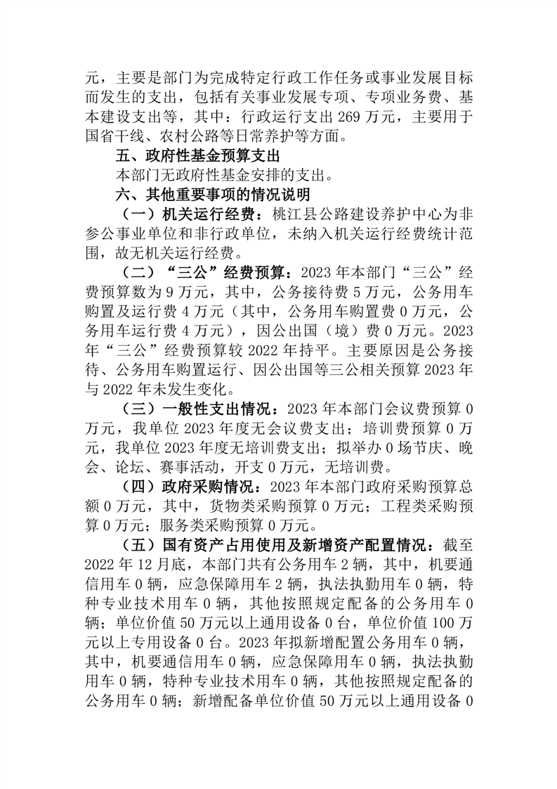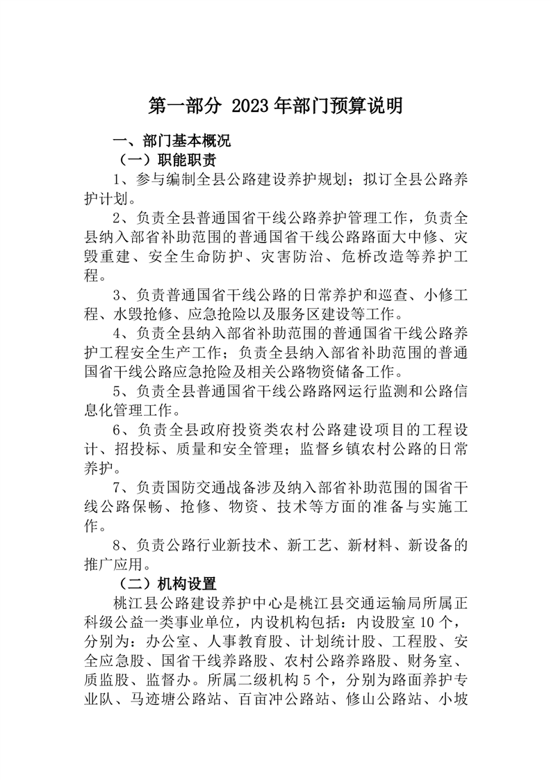 桃江县公路建设养护中心2023年部门预算公开说明