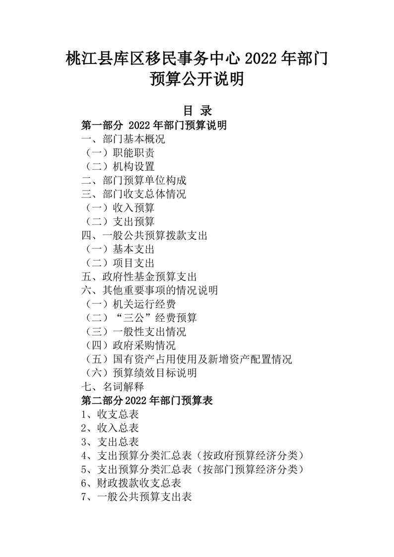 桃江县库区移民事务中心2022年部门预算公开