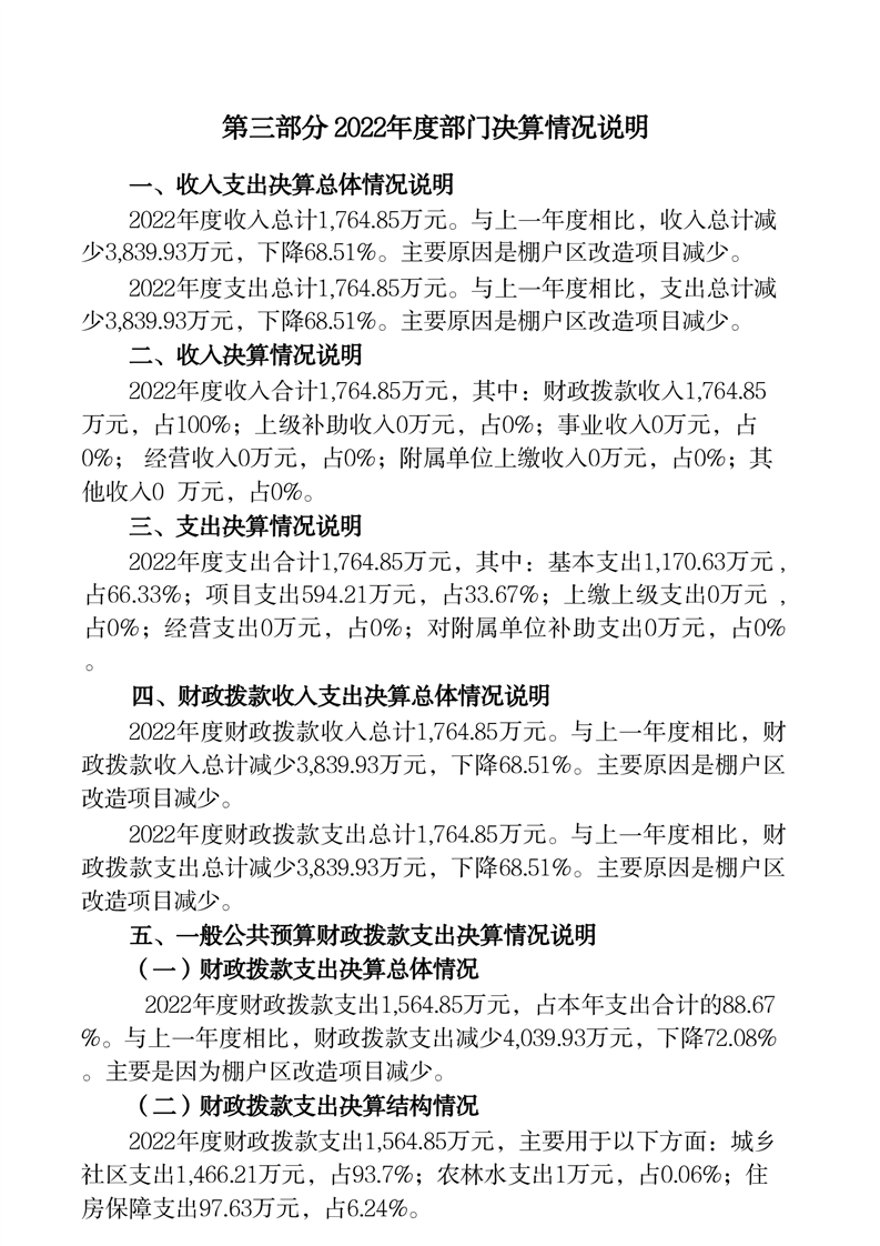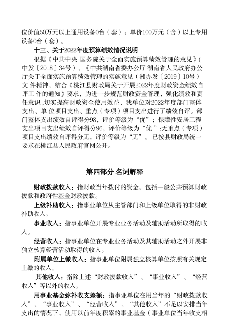 桃江县住房保障服务中心2022年部门决算公开说明