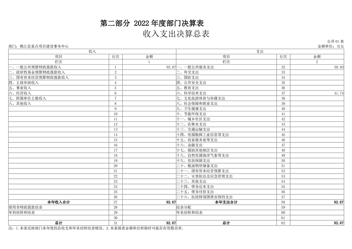 2022年度桃江县重点项目建设事务中心部门决算