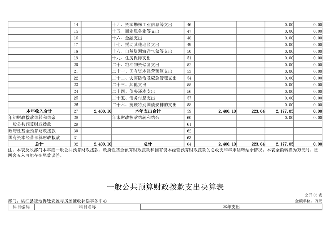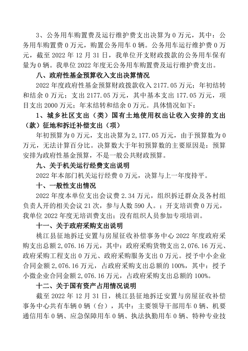 2022年桃江县征地拆迁安置与房屋征收补偿事务中心决算公开