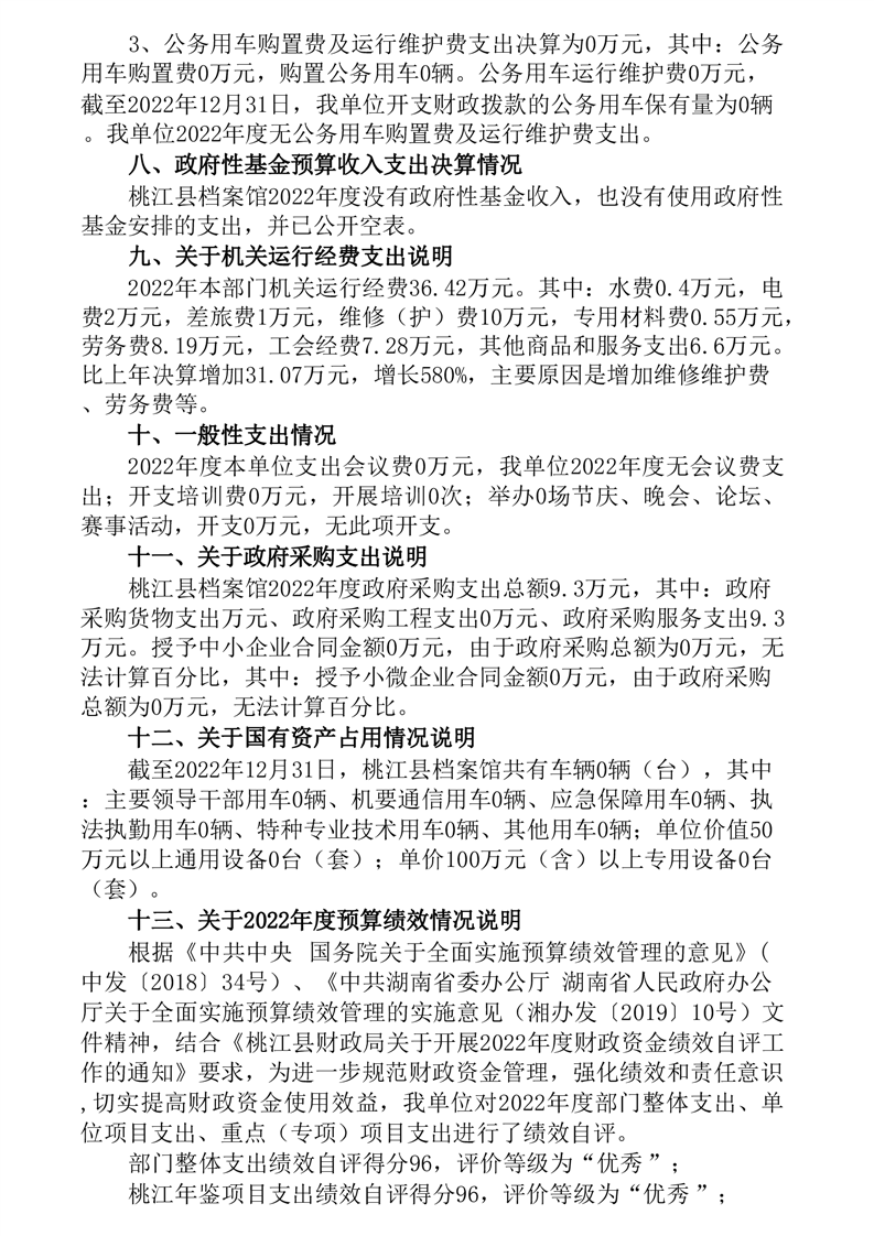 第五部分 2022年度桃江县档案馆整体支出绩效自评报告.docx