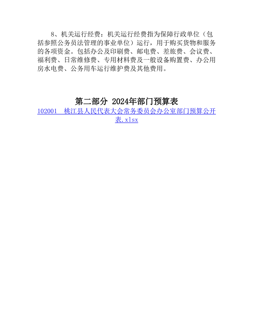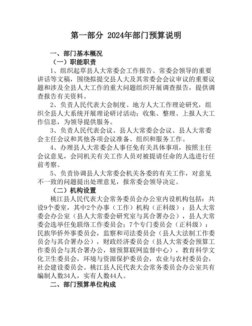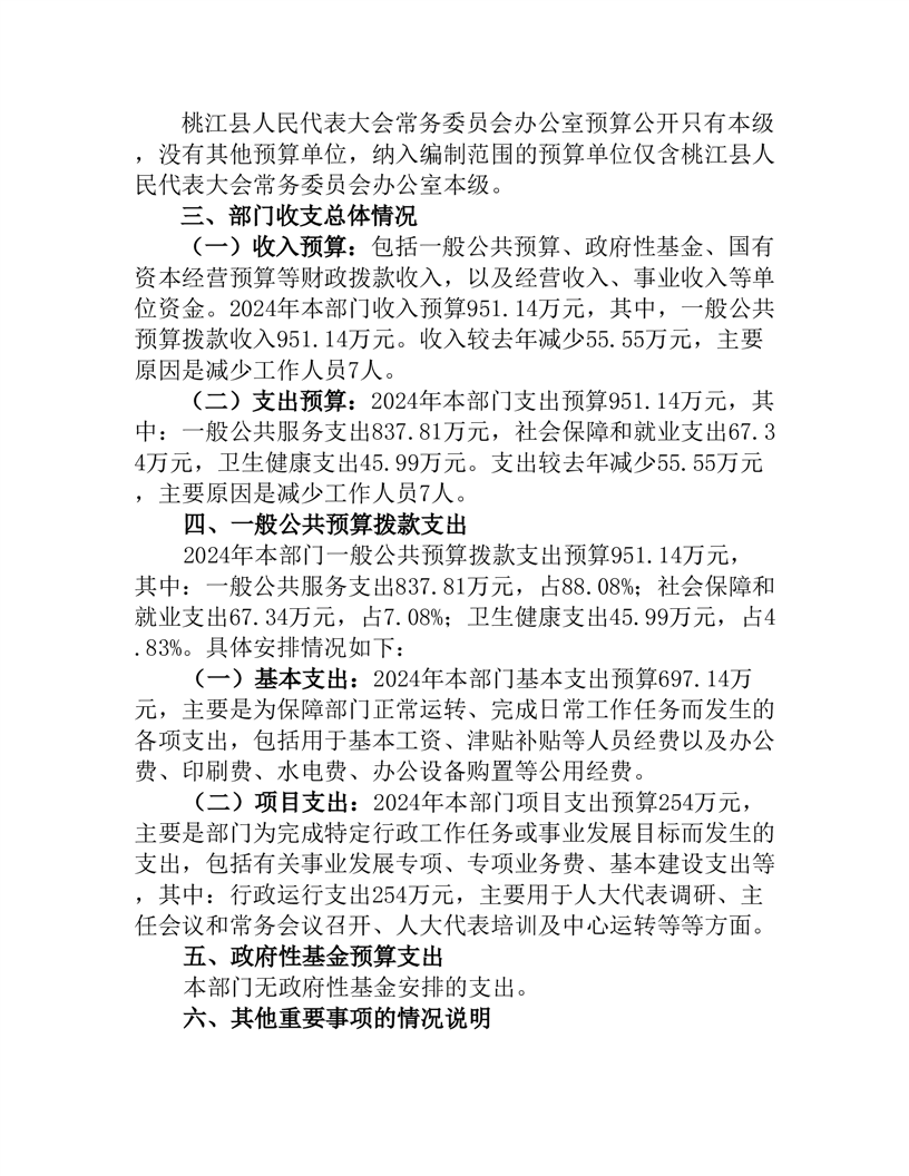 2024年度桃江县人民代表大会常务委员会办公室部门预算公开说明