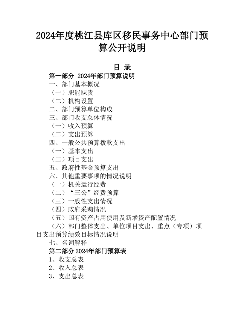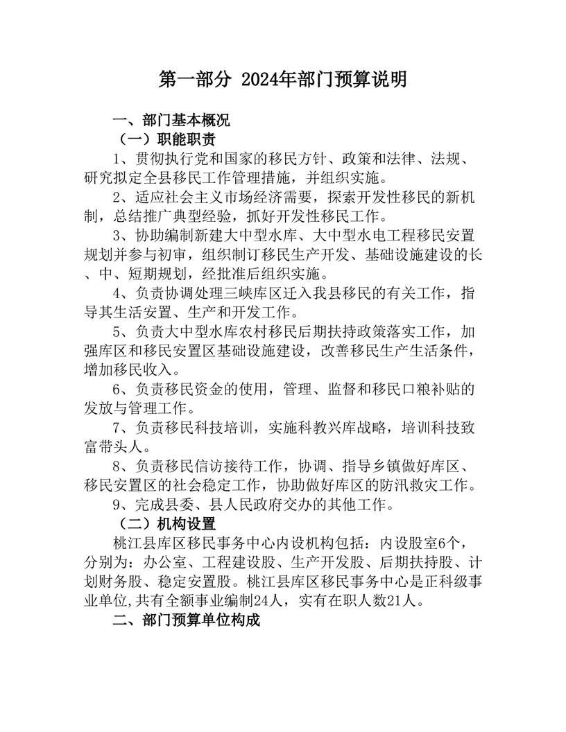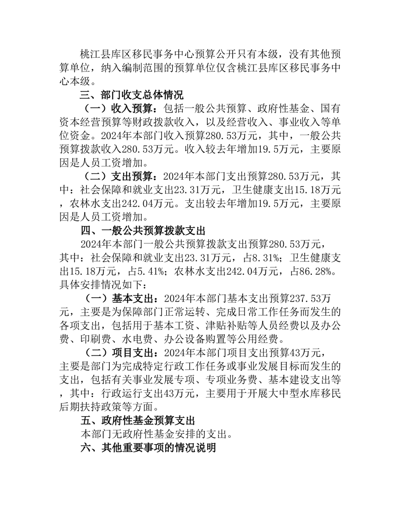 桃江县库区移民事务中心2024年度部门预算公开说明
