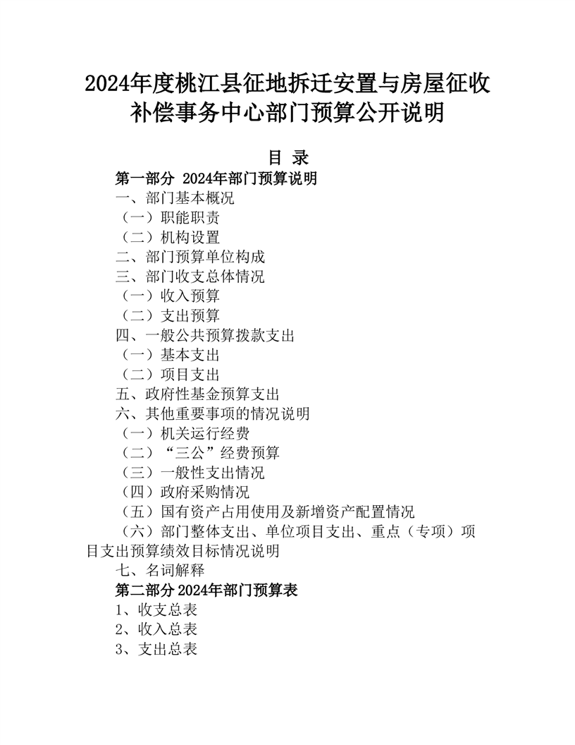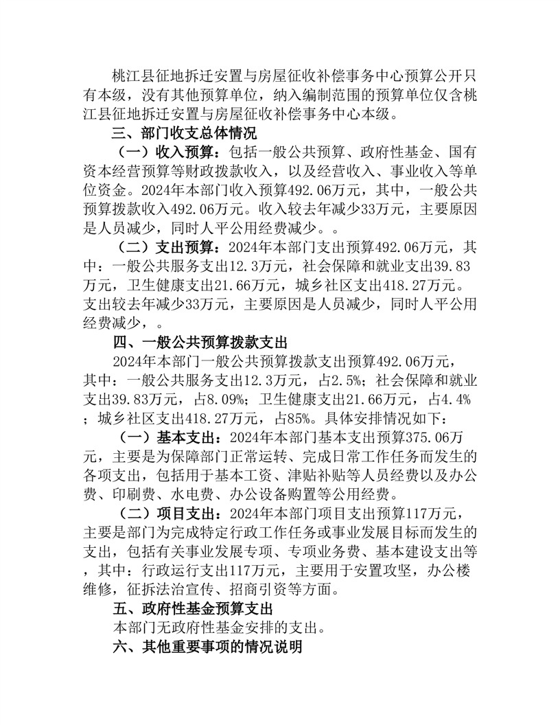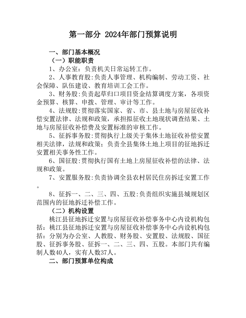 2024年度桃江县征地拆迁安置与房屋征收补偿事务中心部门预算公开说明