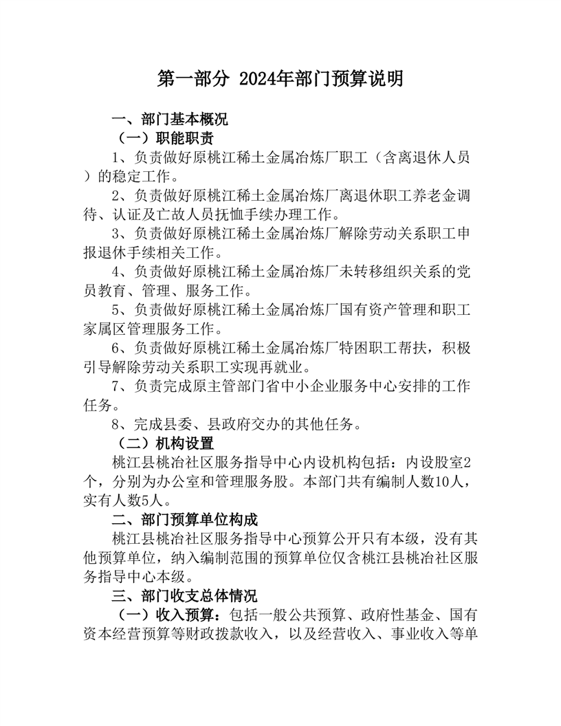 2024年度桃江县桃冶社区服务指导中心部门预算公开说明