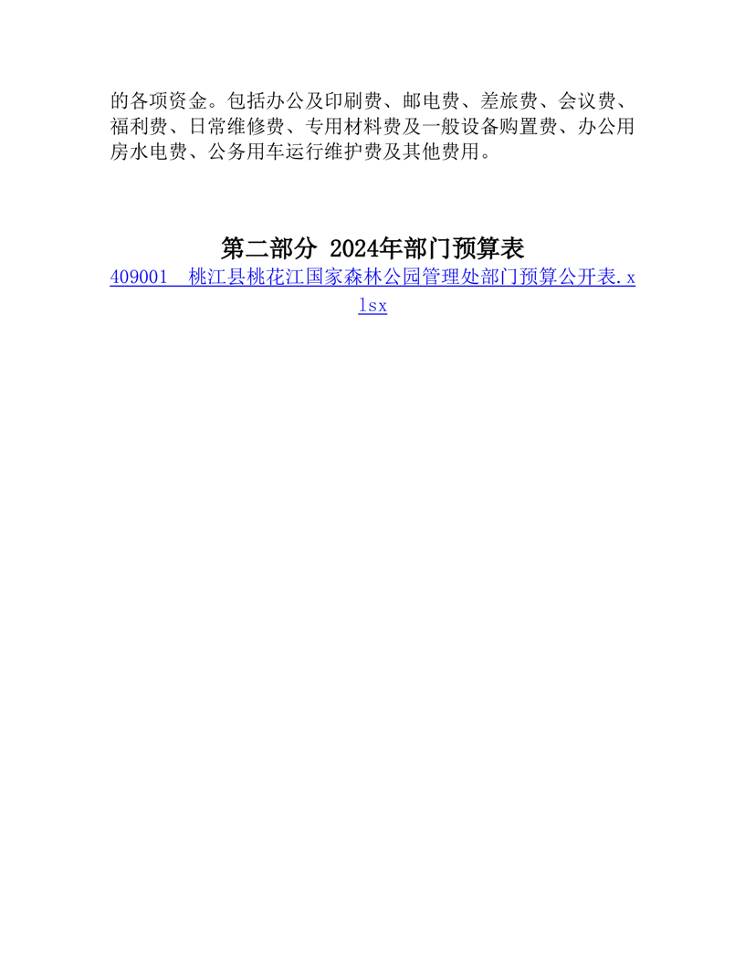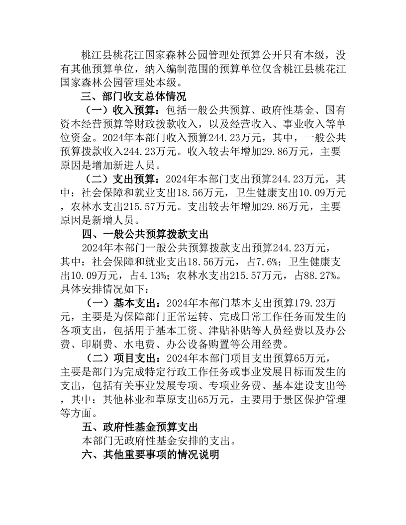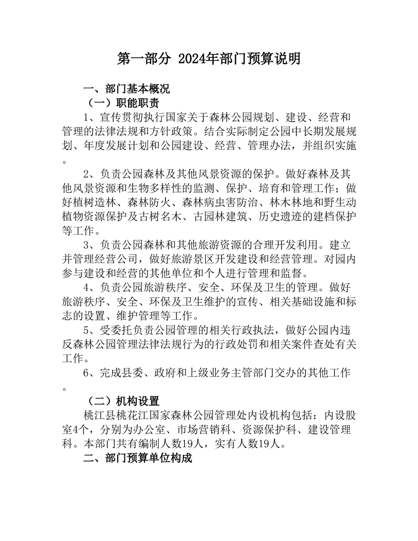 2024年度桃江县桃花江国家森林公园管理处部门预算公开说明