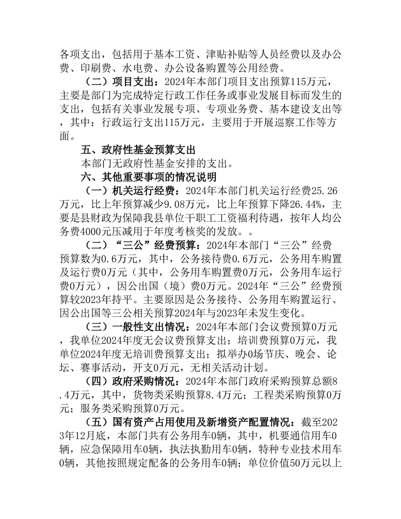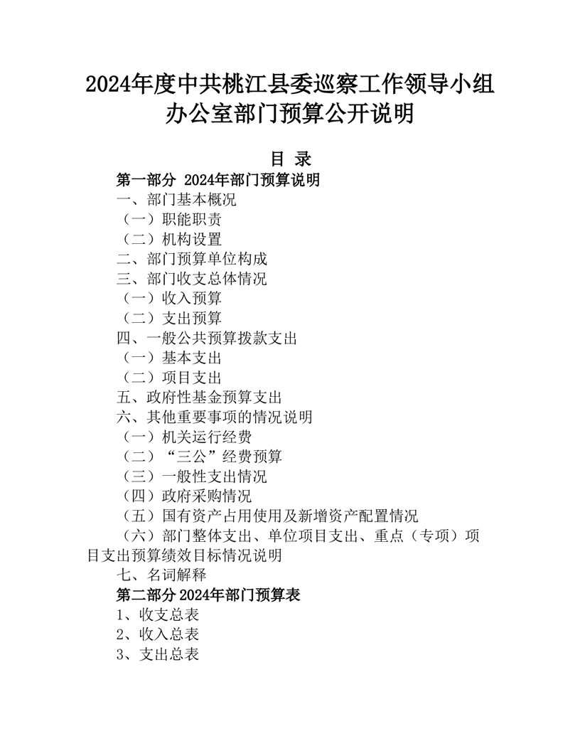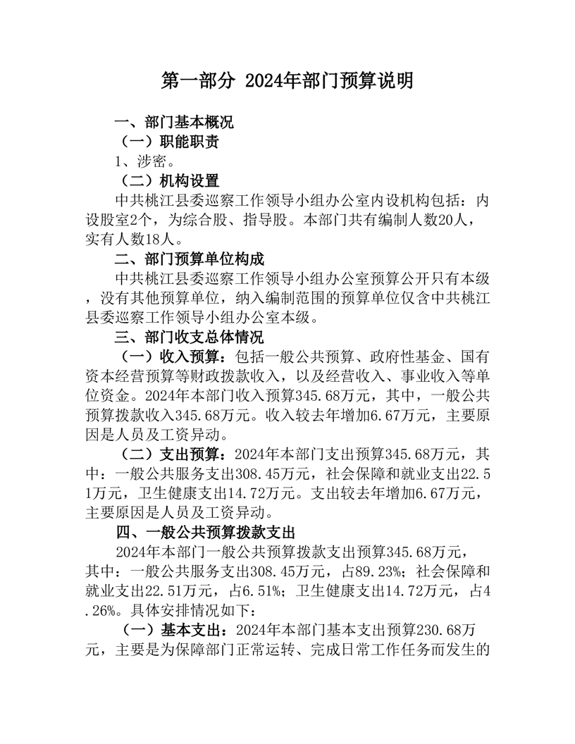 2024年度中共桃江县委巡察工作领导小组办公室部门预算公开说明