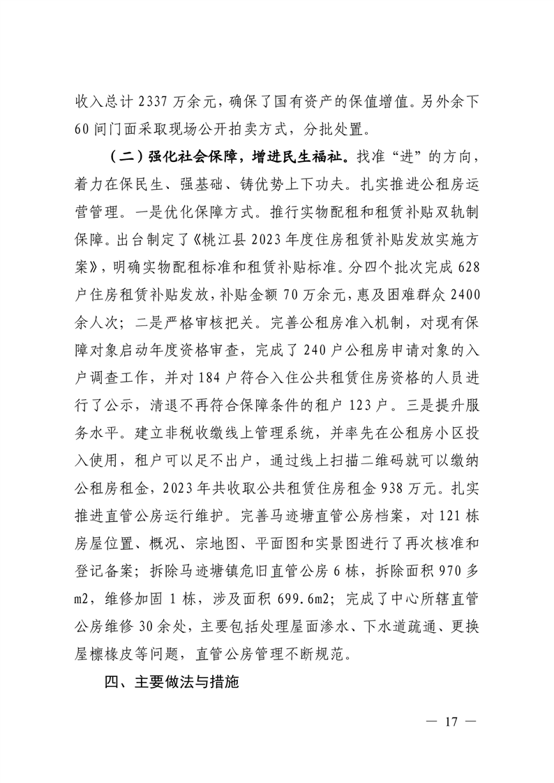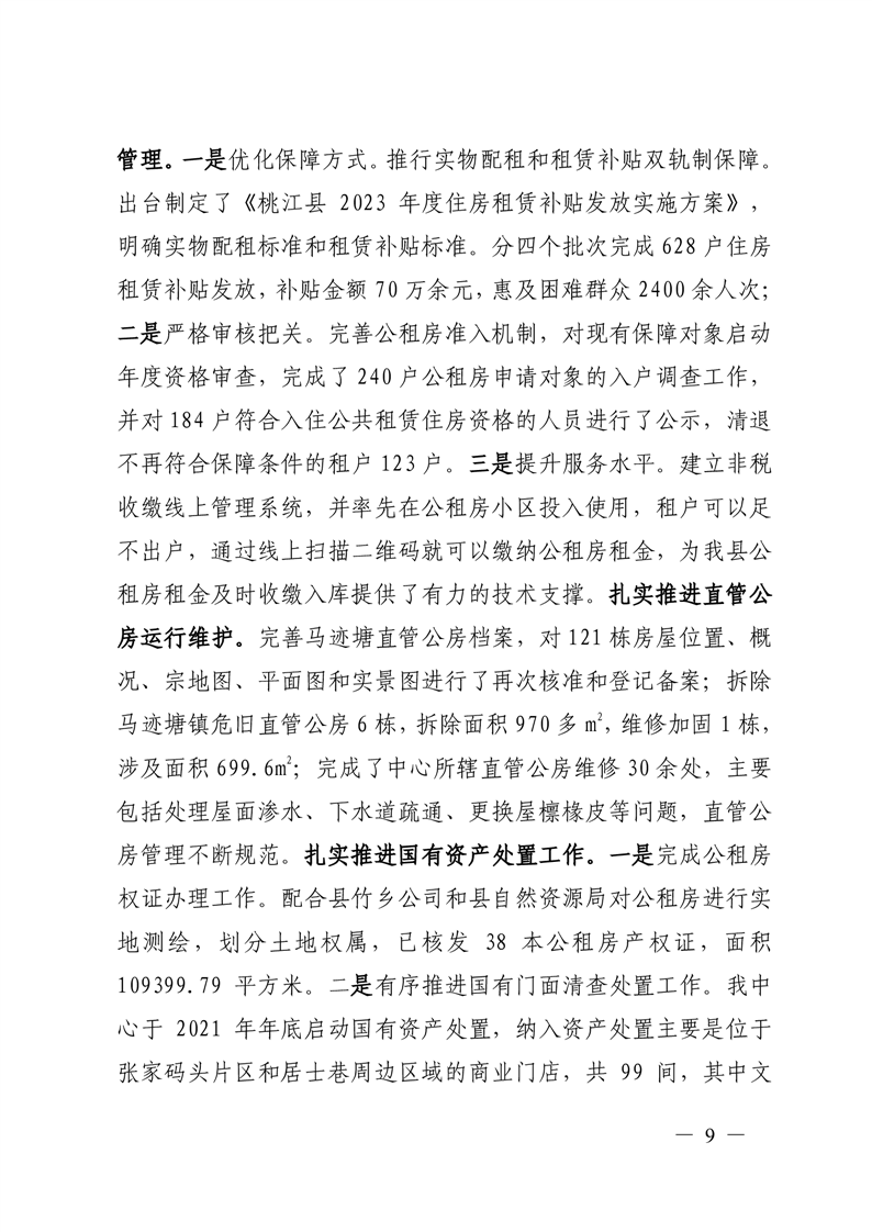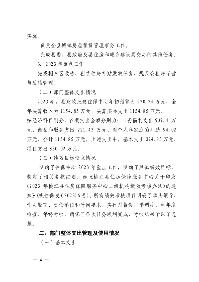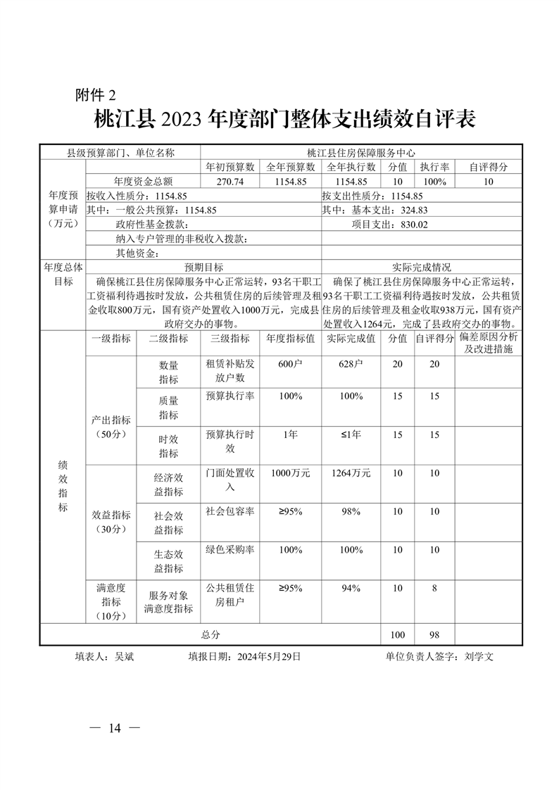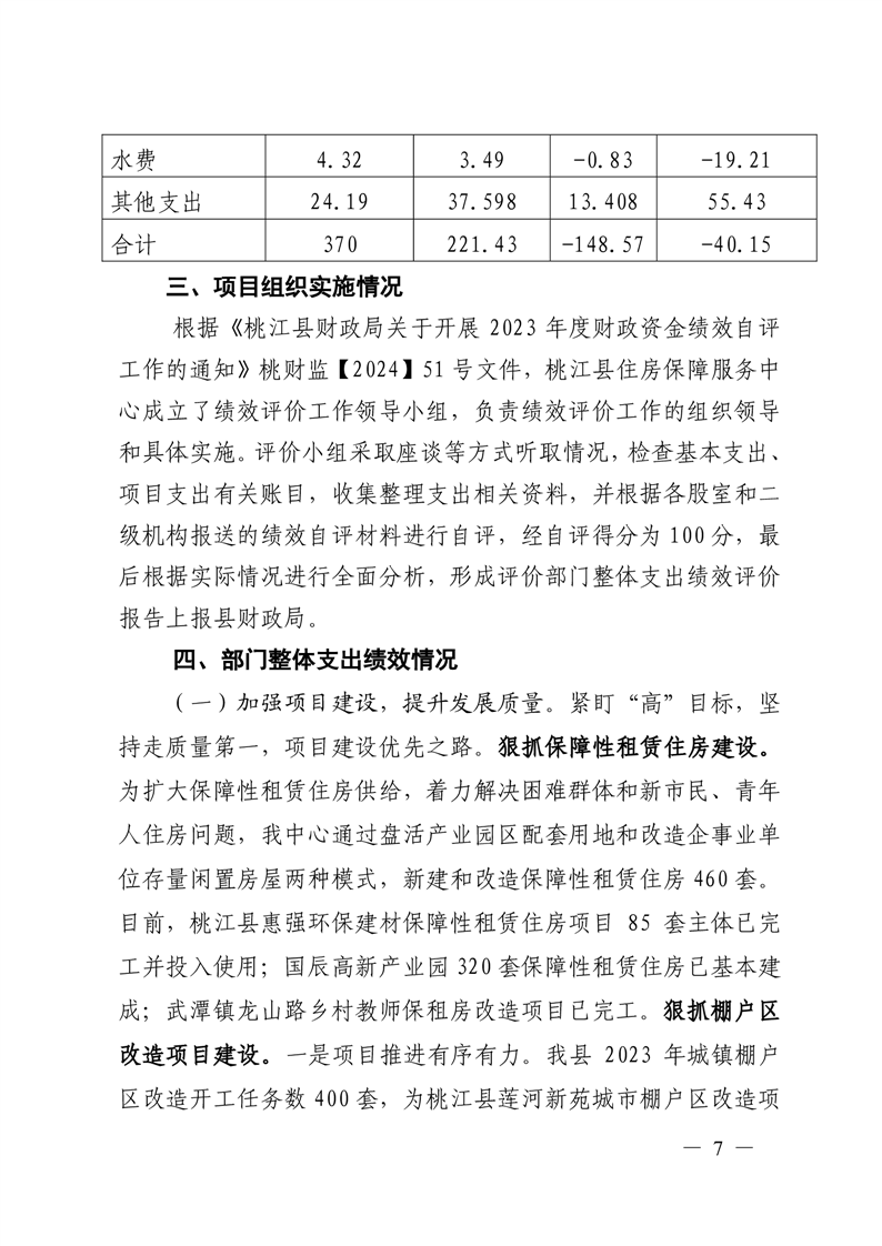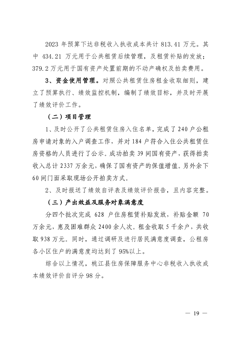 桃江县住房保障服务中心2023年部门整体绩效评价