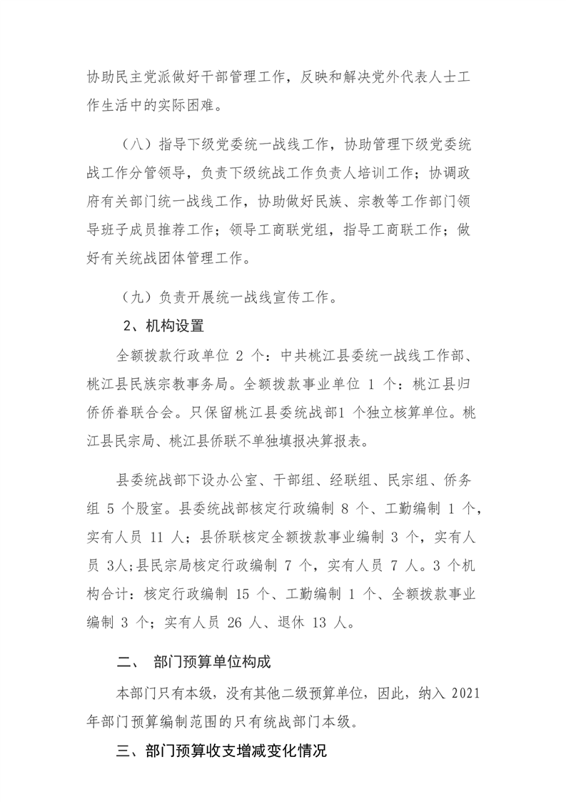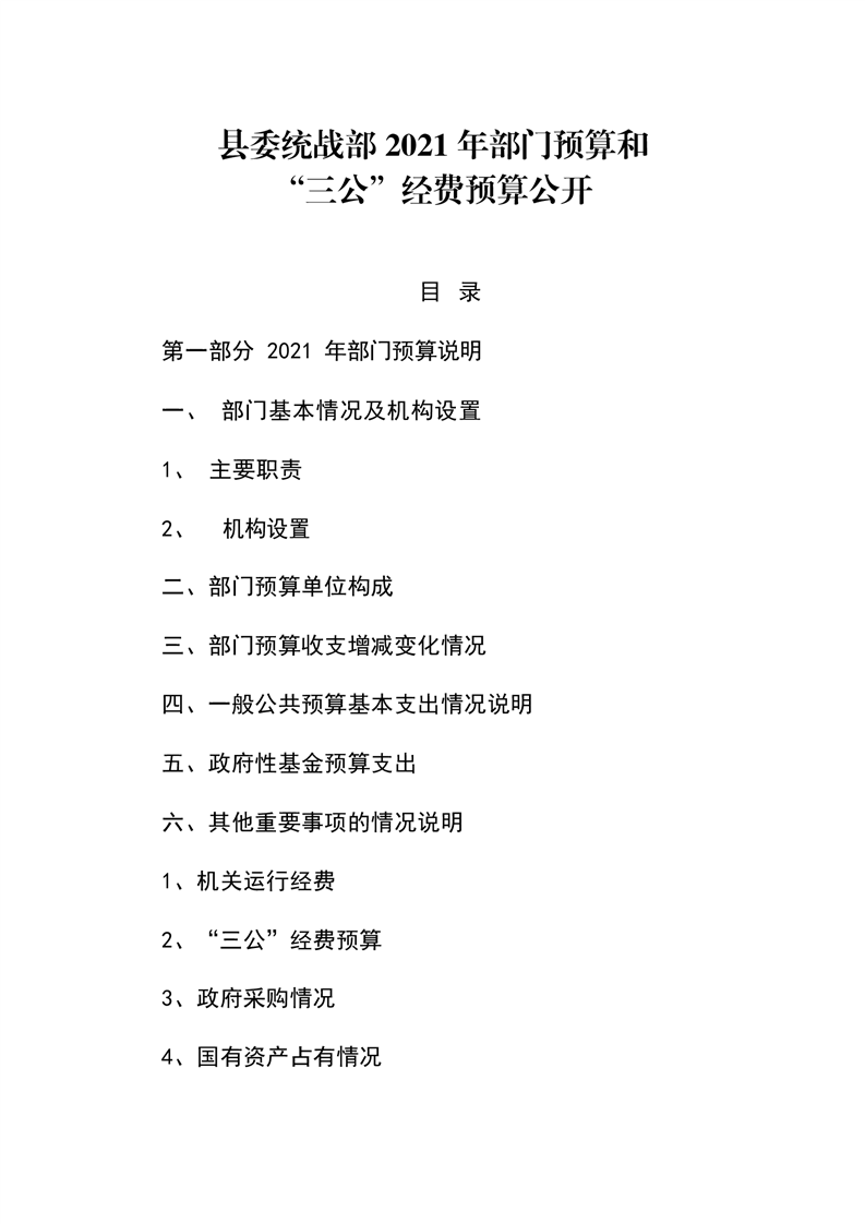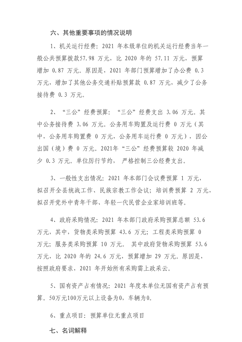 县委统战部2021年部门预算和“三公”经费预算公开