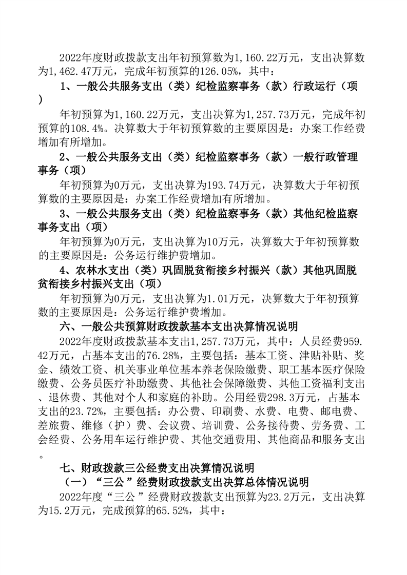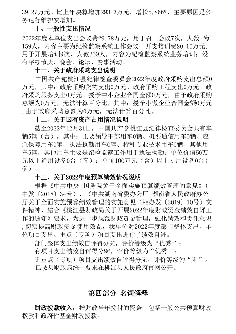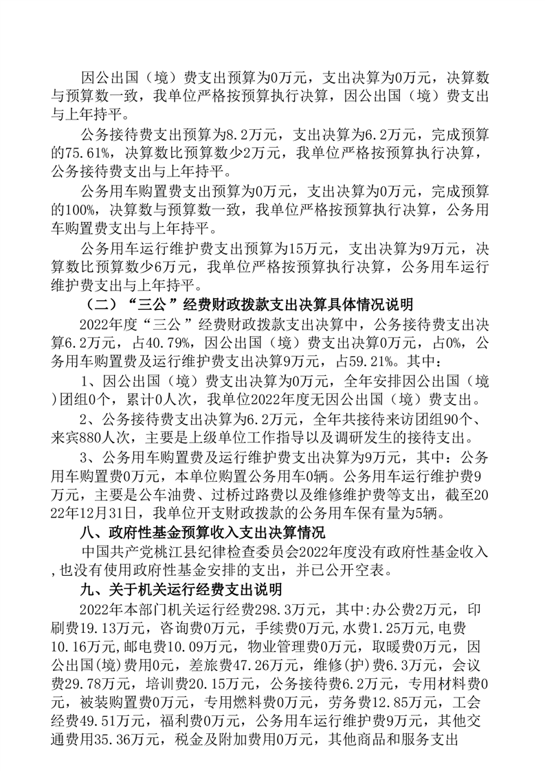 中国共产党桃江县纪律检查委员会2022年部门决算公开说明