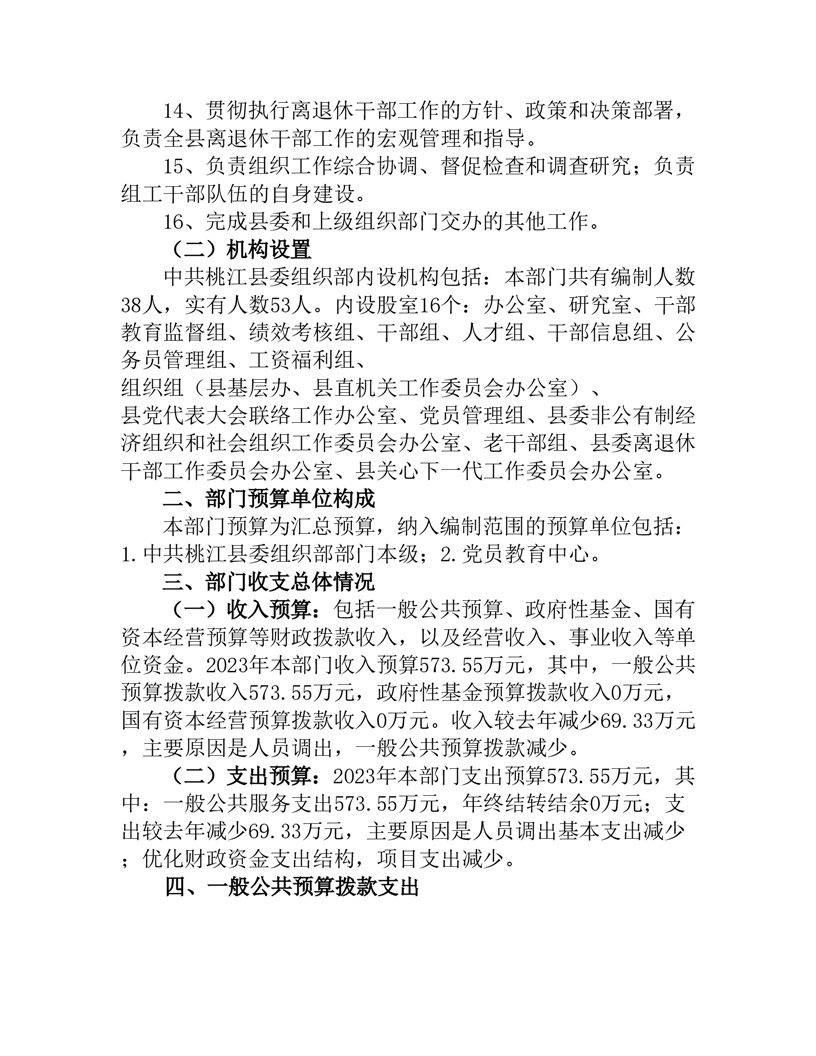 中共桃江县委组织部2023年部门预算公开说明