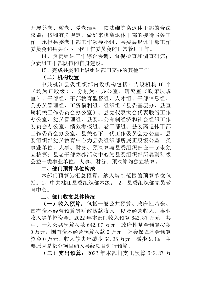 中共桃江县委组织部2022年部门预算