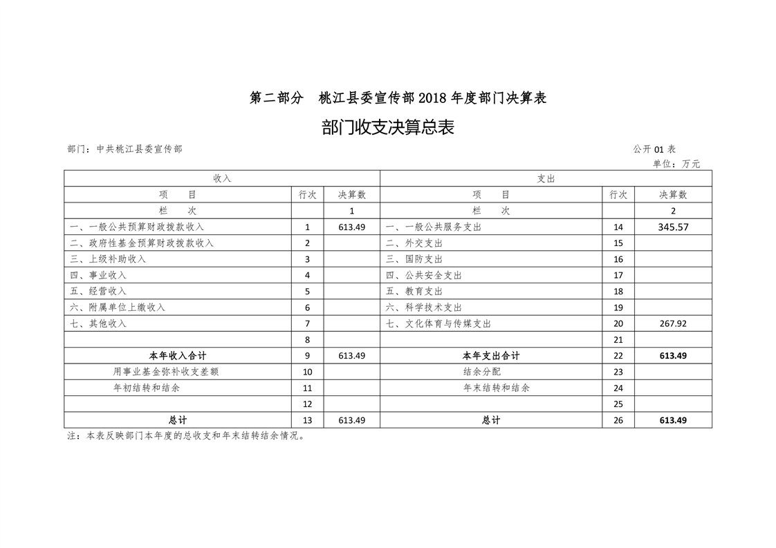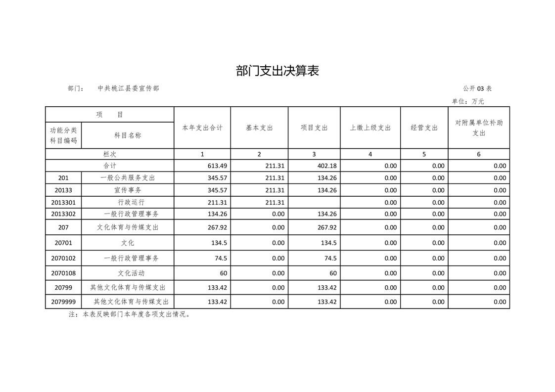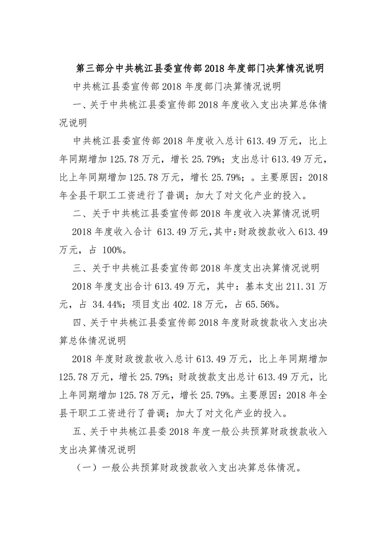 中共桃江县委宣传部2018年部门决算公开