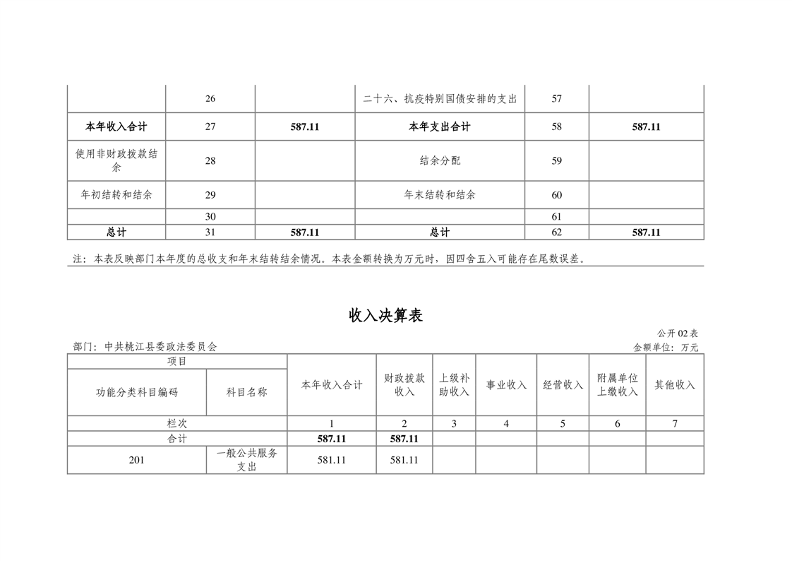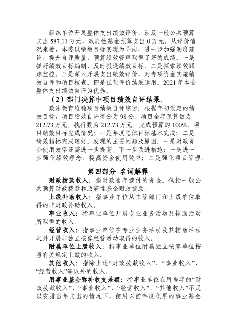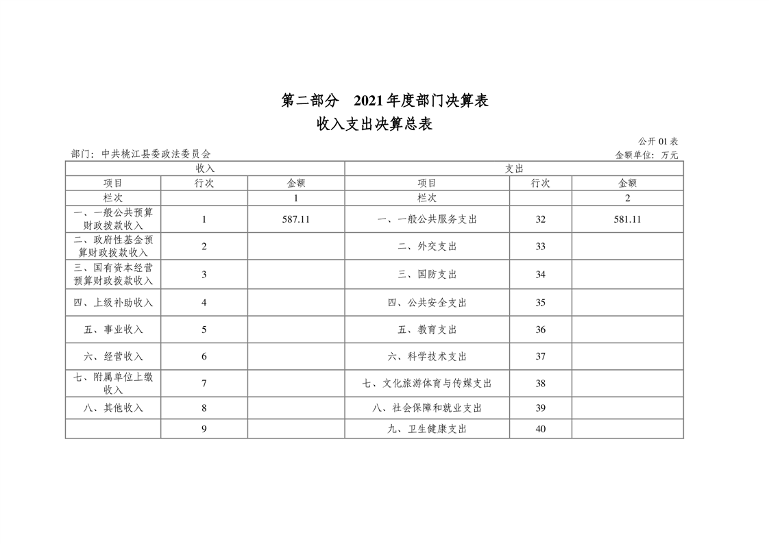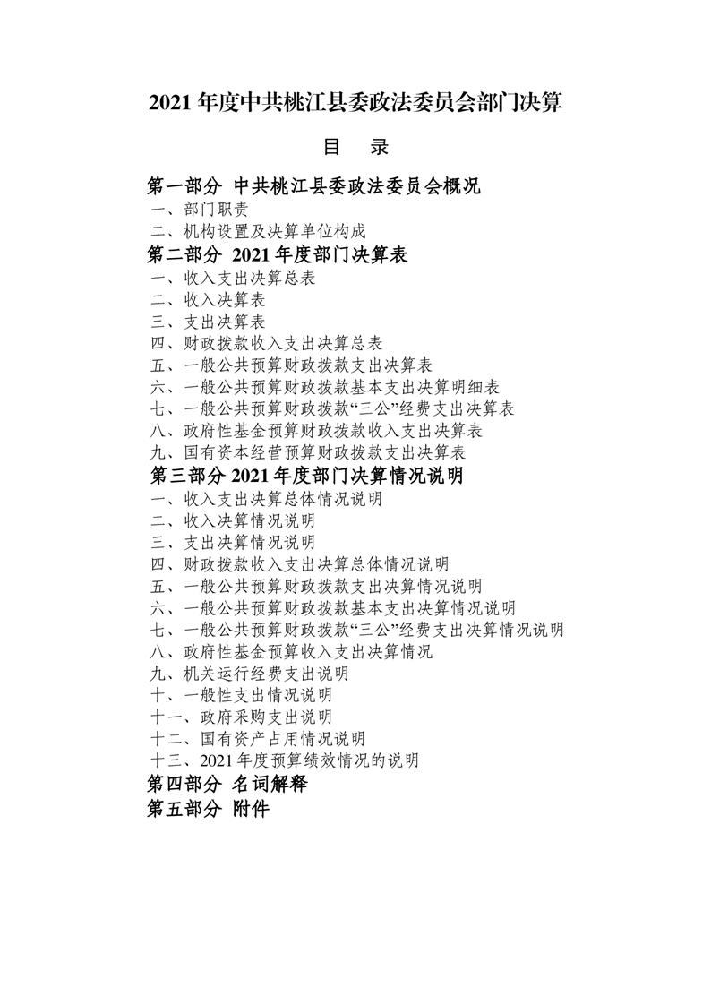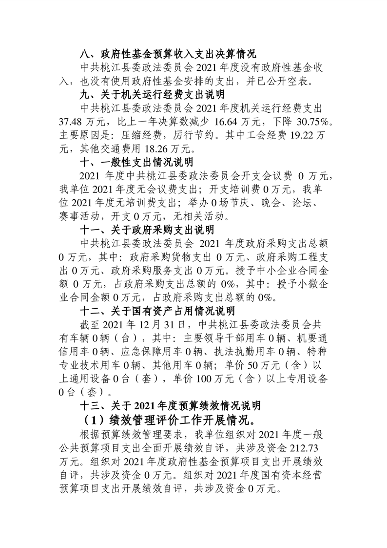 中共桃江县委政法委员会2021年部门决算公开说明