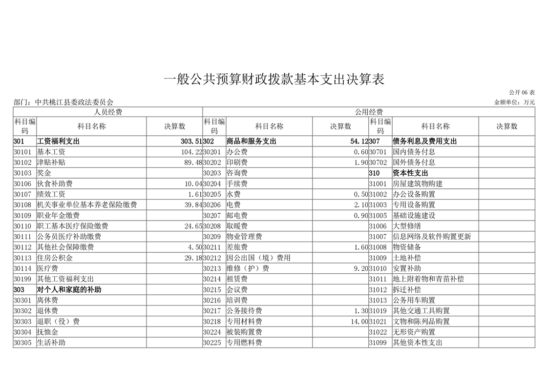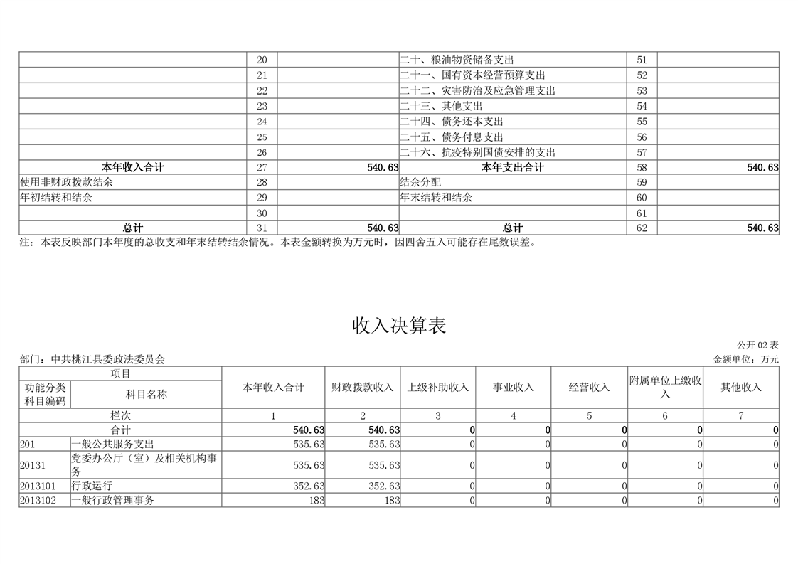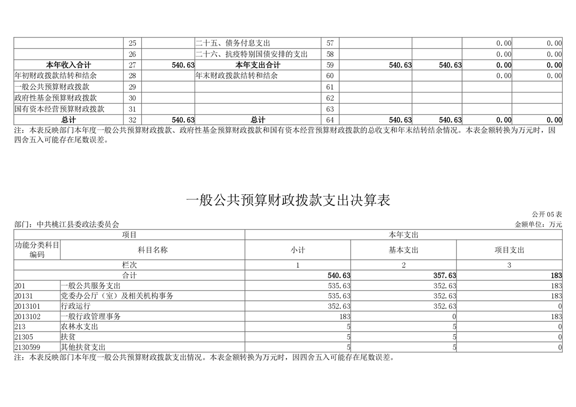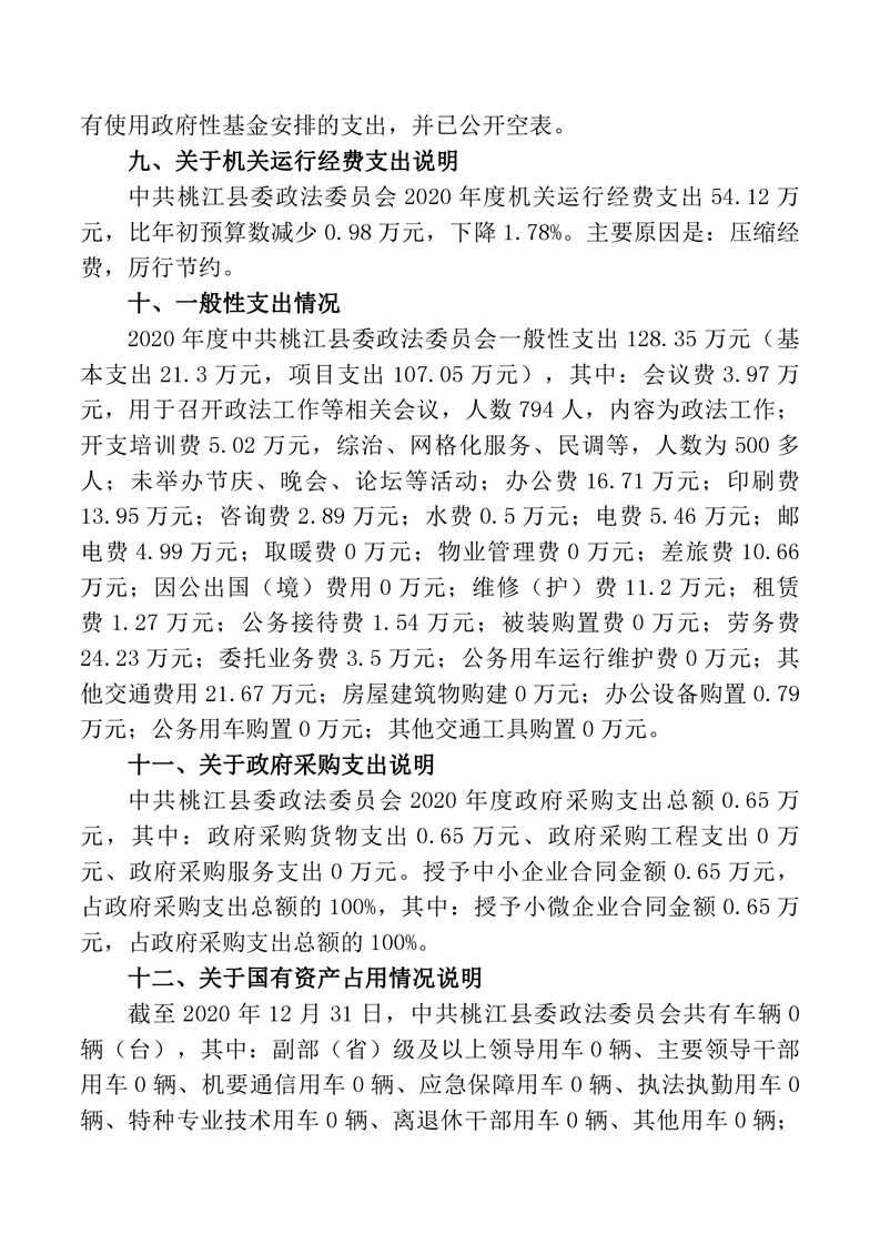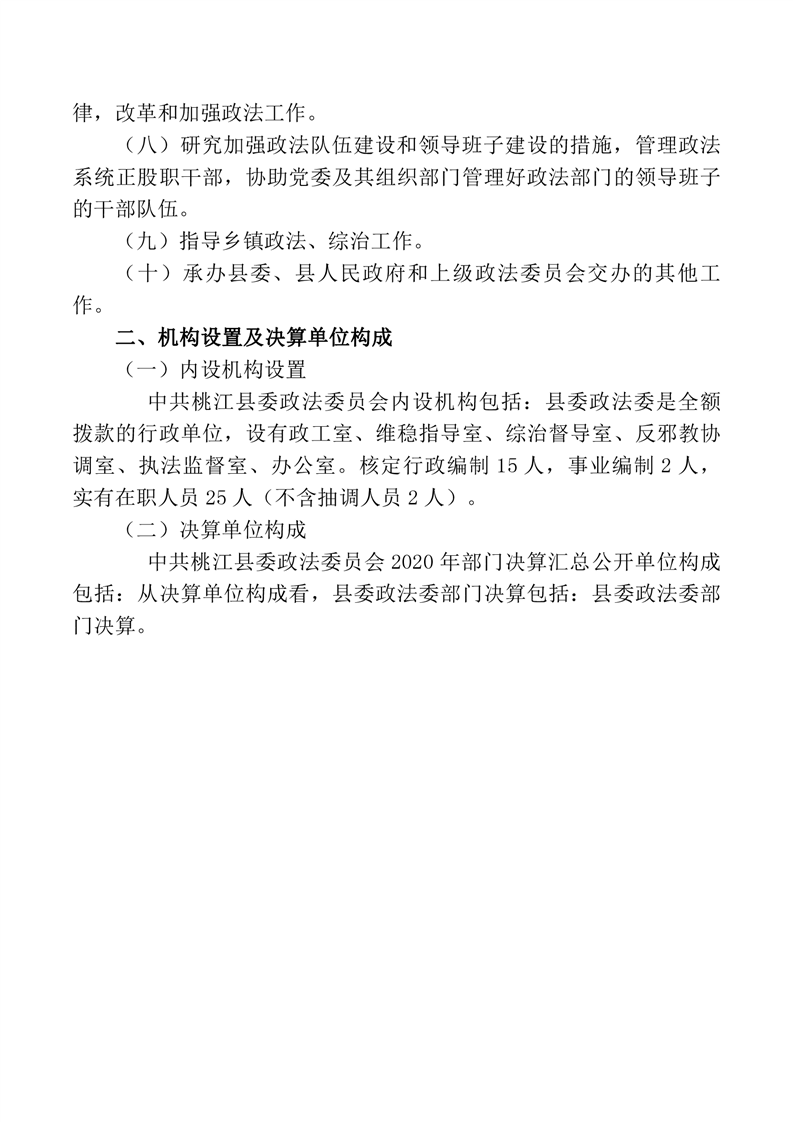 中共桃江县委政法委员会2020年度部门决算公开说明