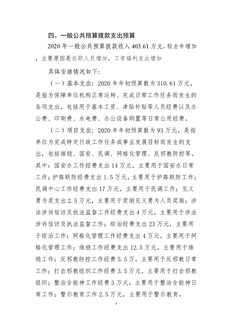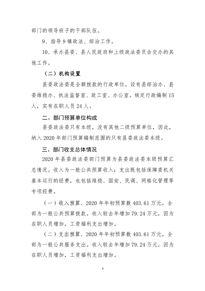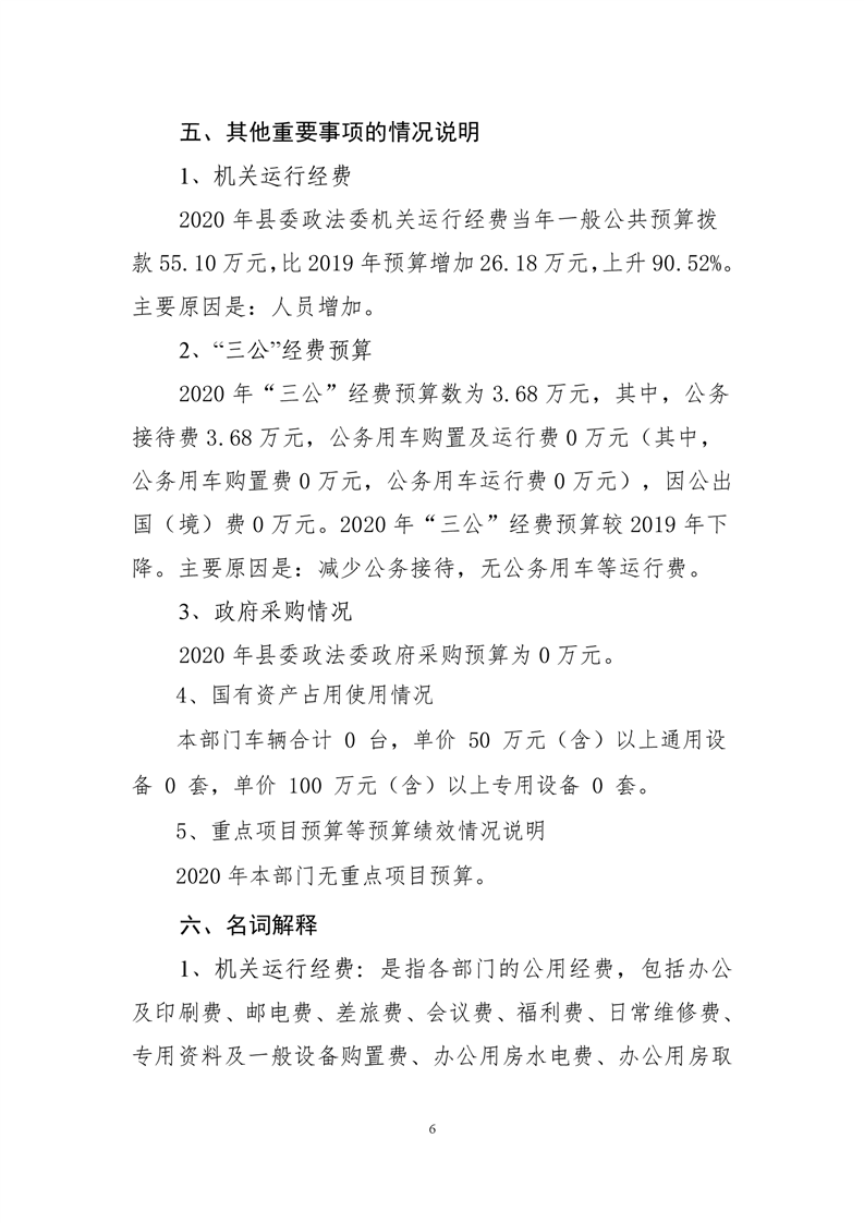 县委政法委2020年部门预算公开说明
