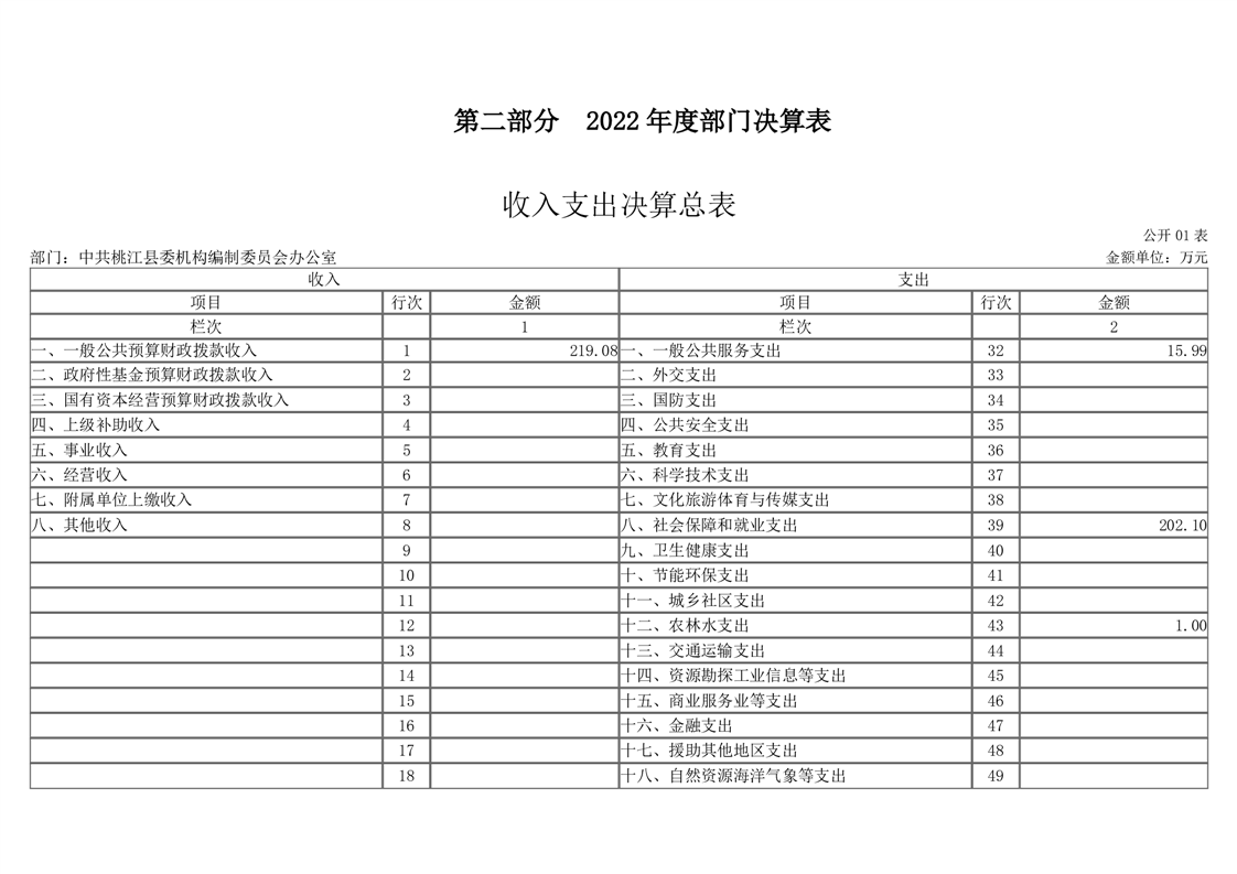 2022年度中共桃江县机构编制委员会办公室部门决算公开说明
