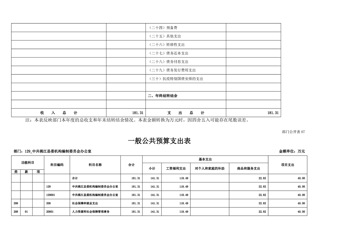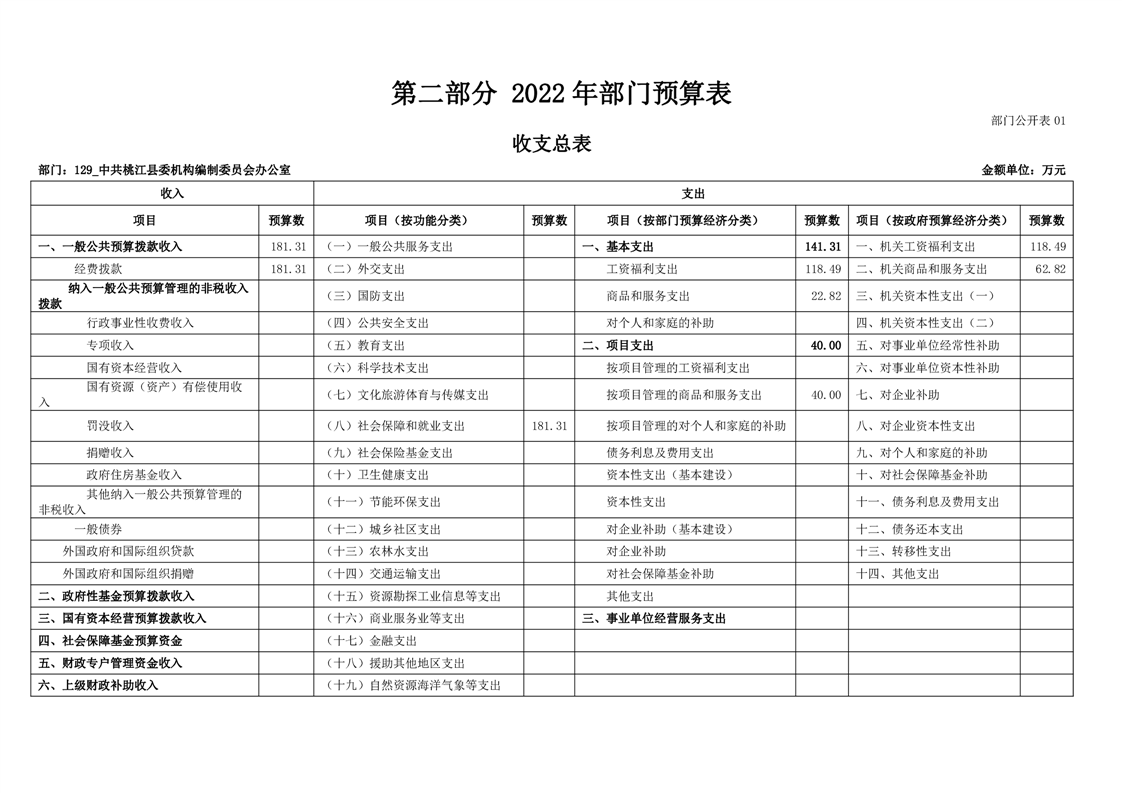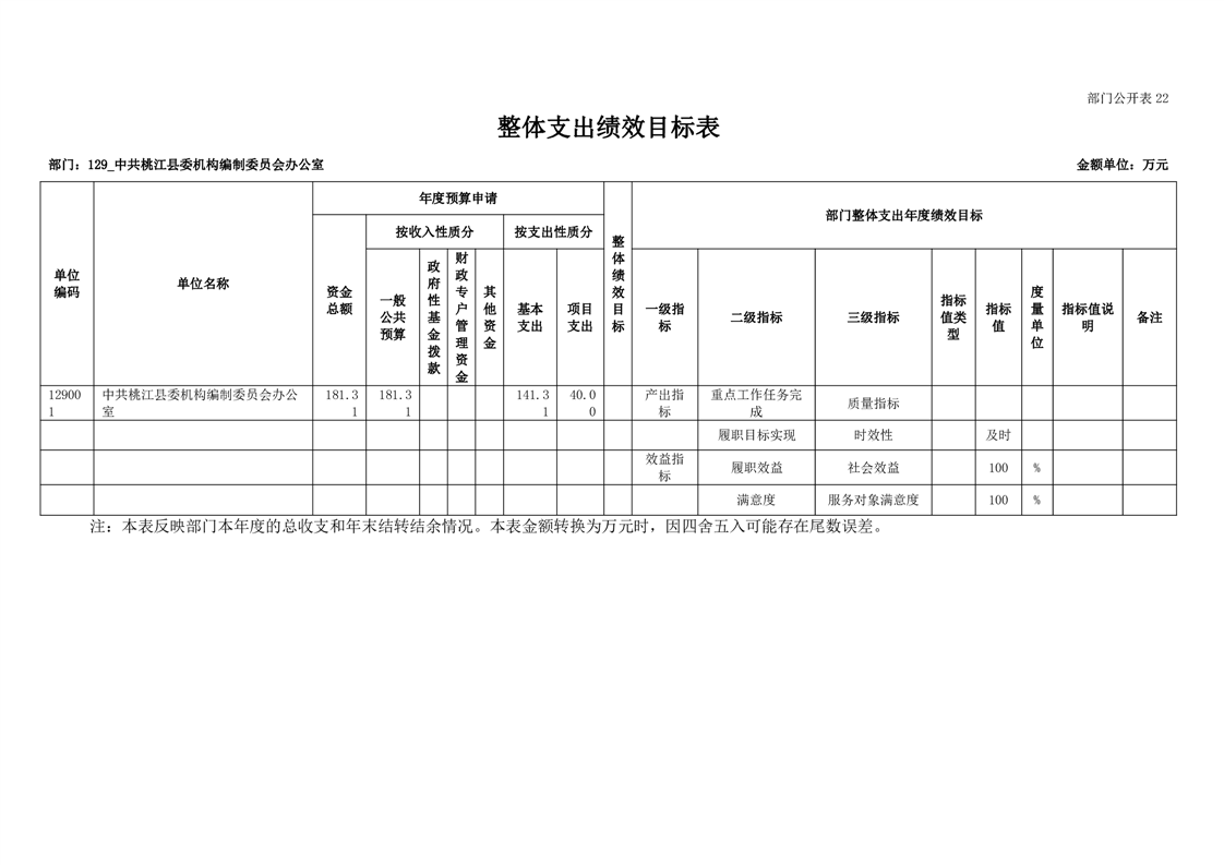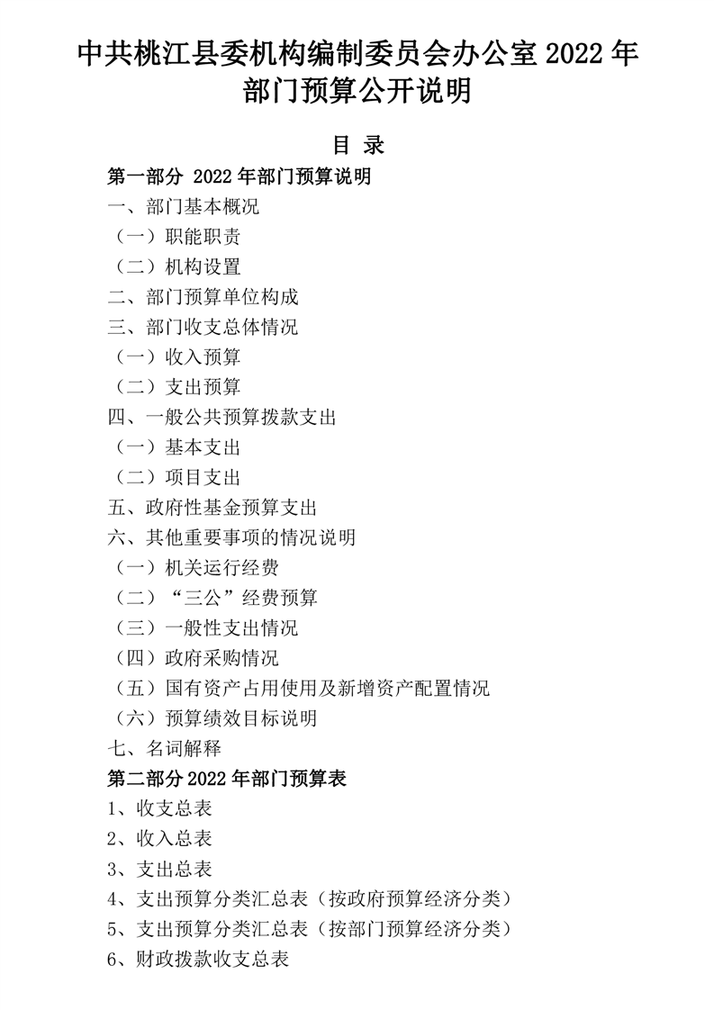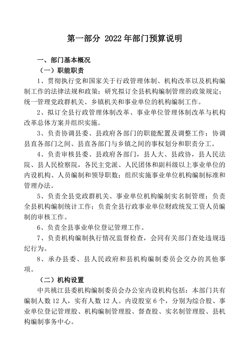 中共桃江县委机构编制委员会办公室2022年部门预算公开说明