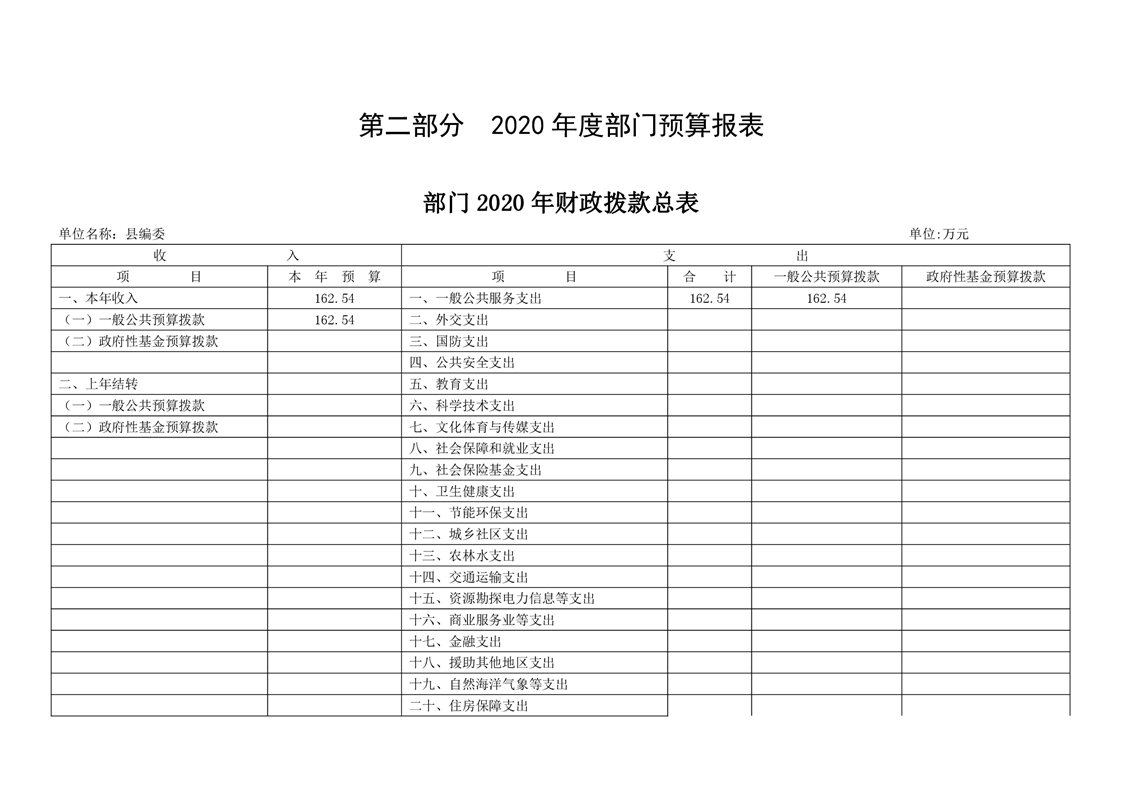 2020年度桃江县委编办部门预算公开