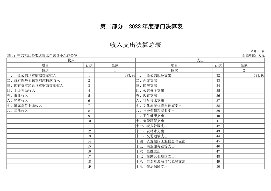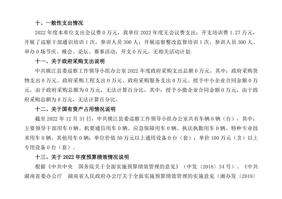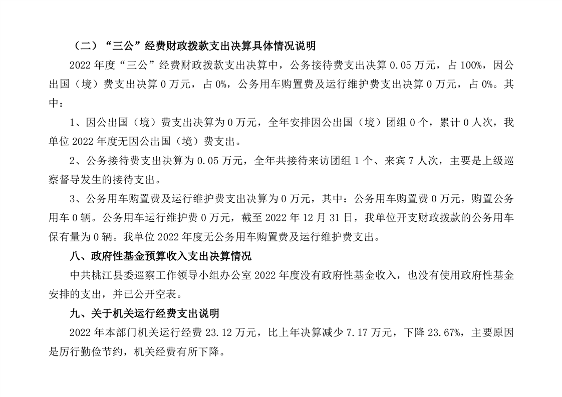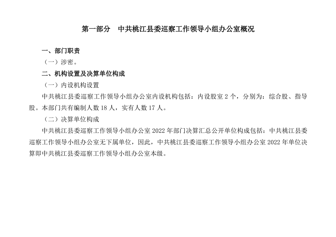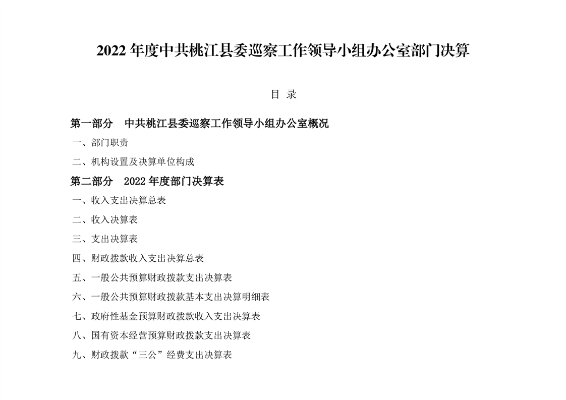 2022年度中共桃江县委巡察工作领导小组办公室部门决算