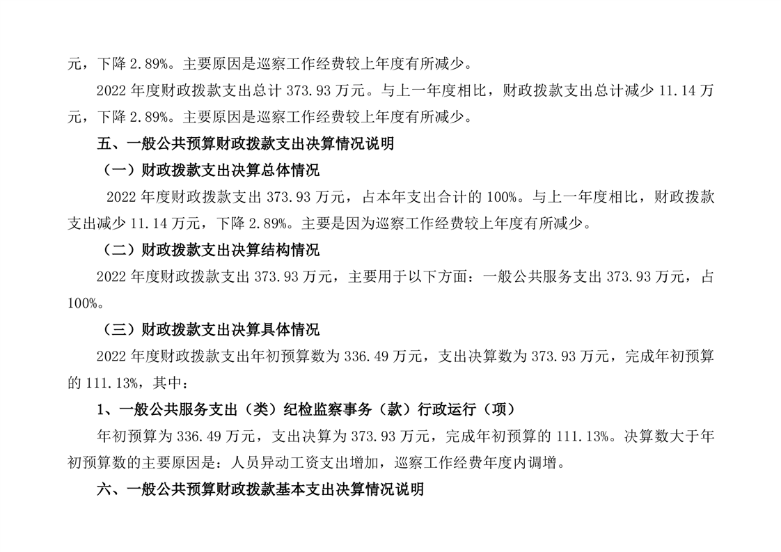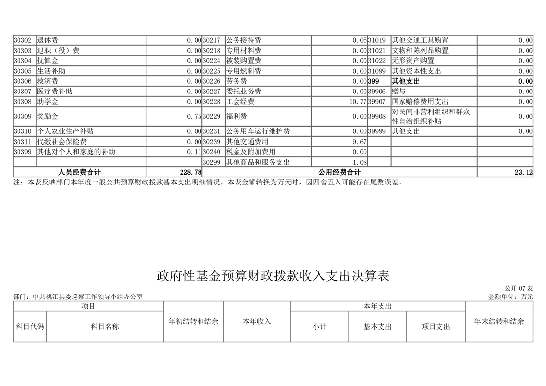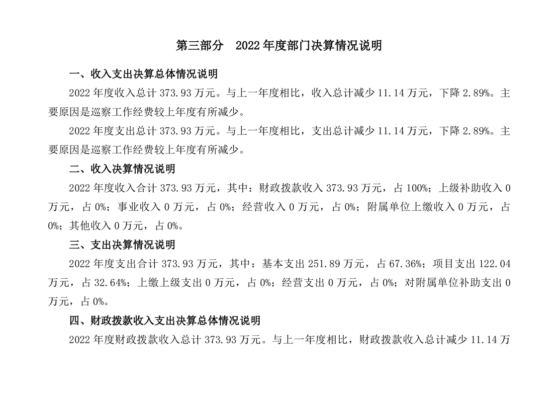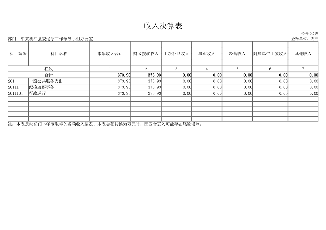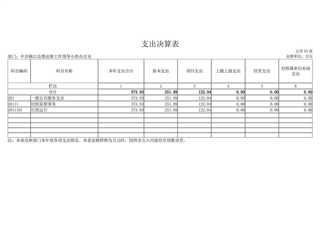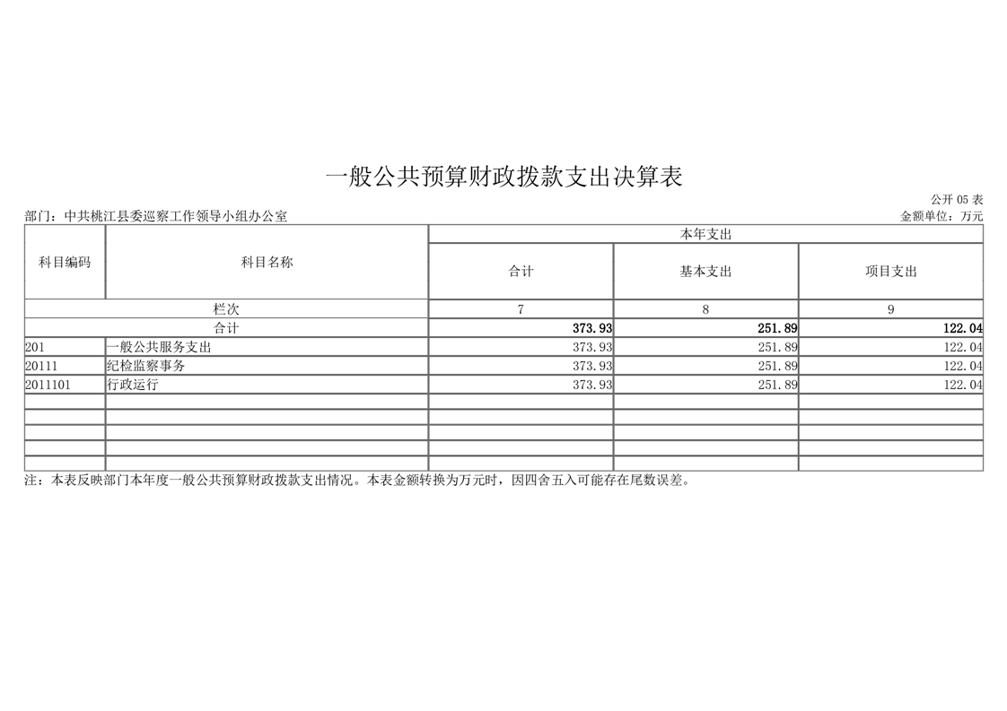 2022年度中共桃江县委巡察工作领导小组办公室部门决算