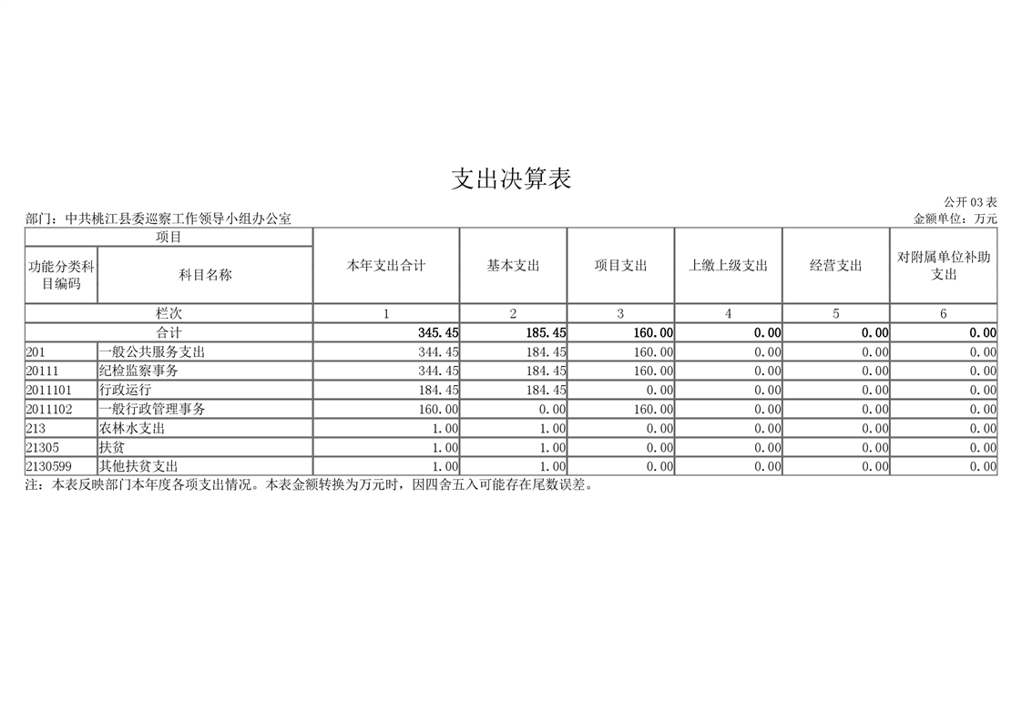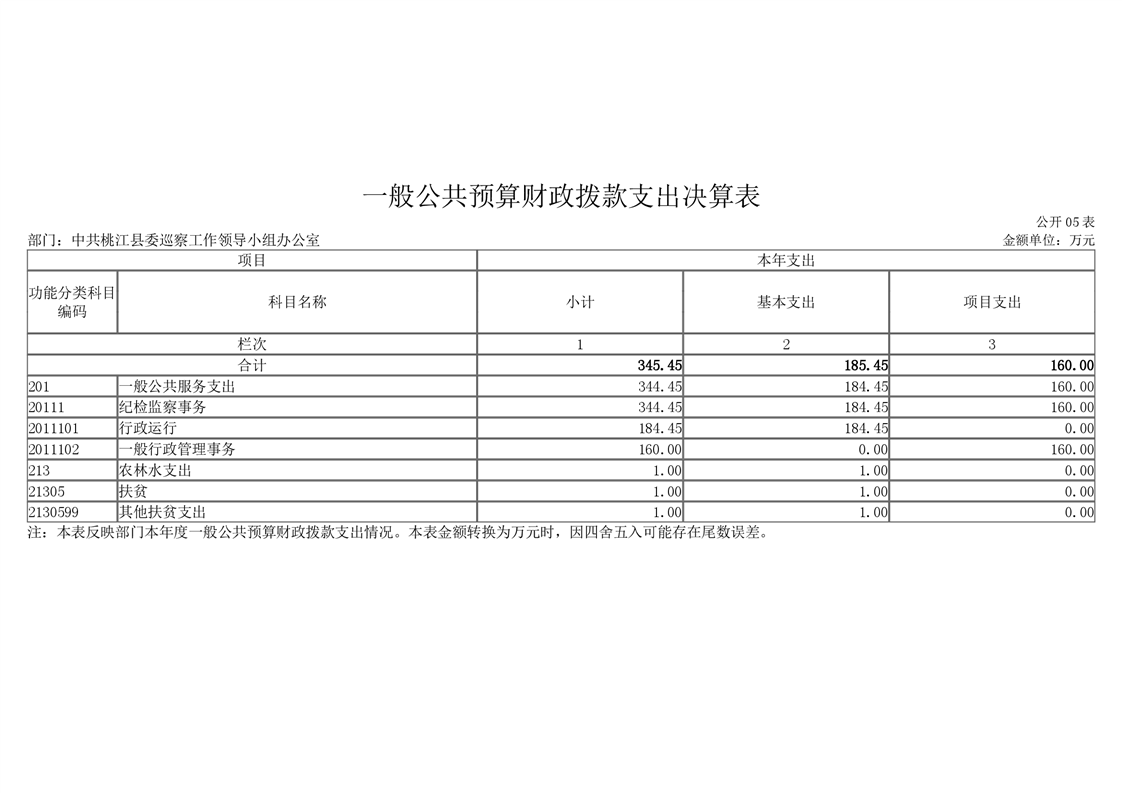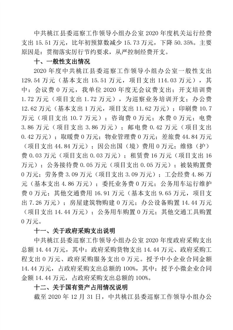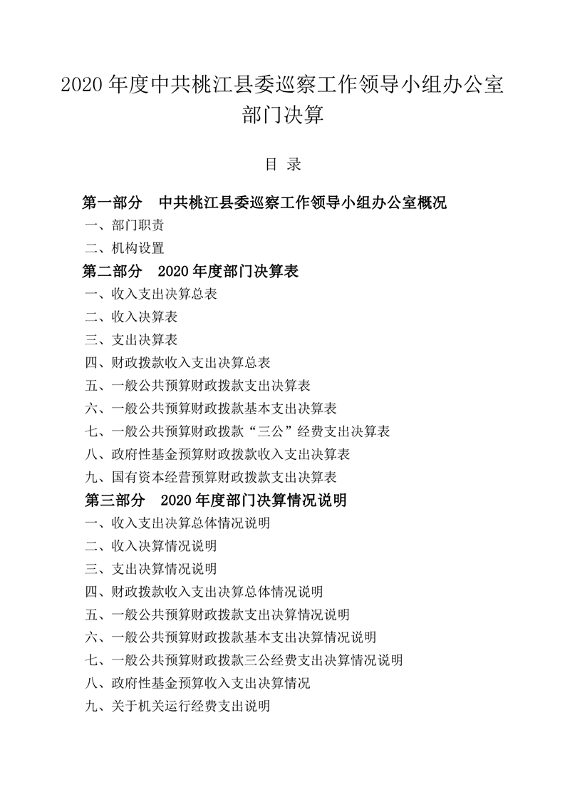 中共桃江县委巡察工作领导小组办公室2020年度部门决算公开说明