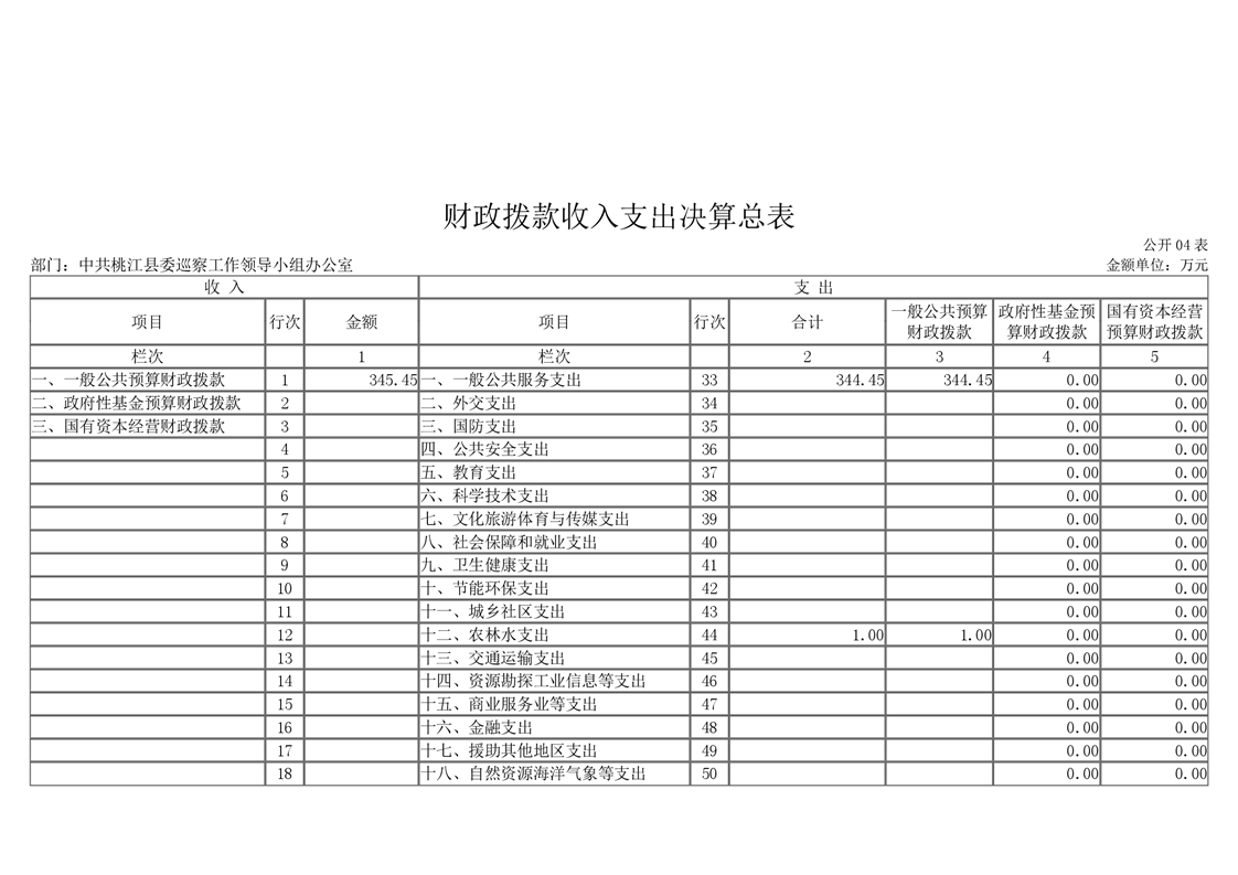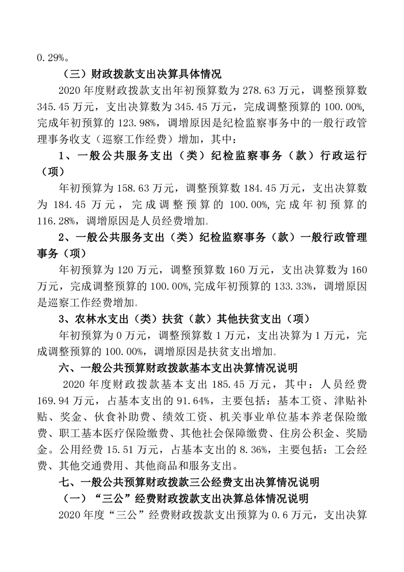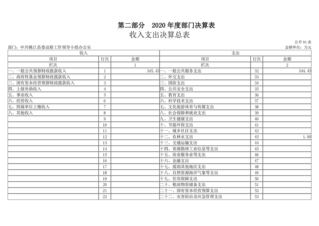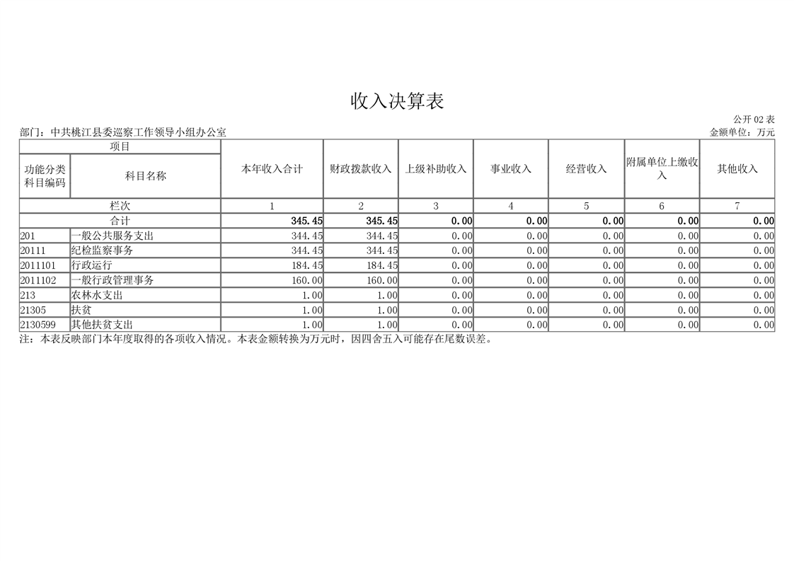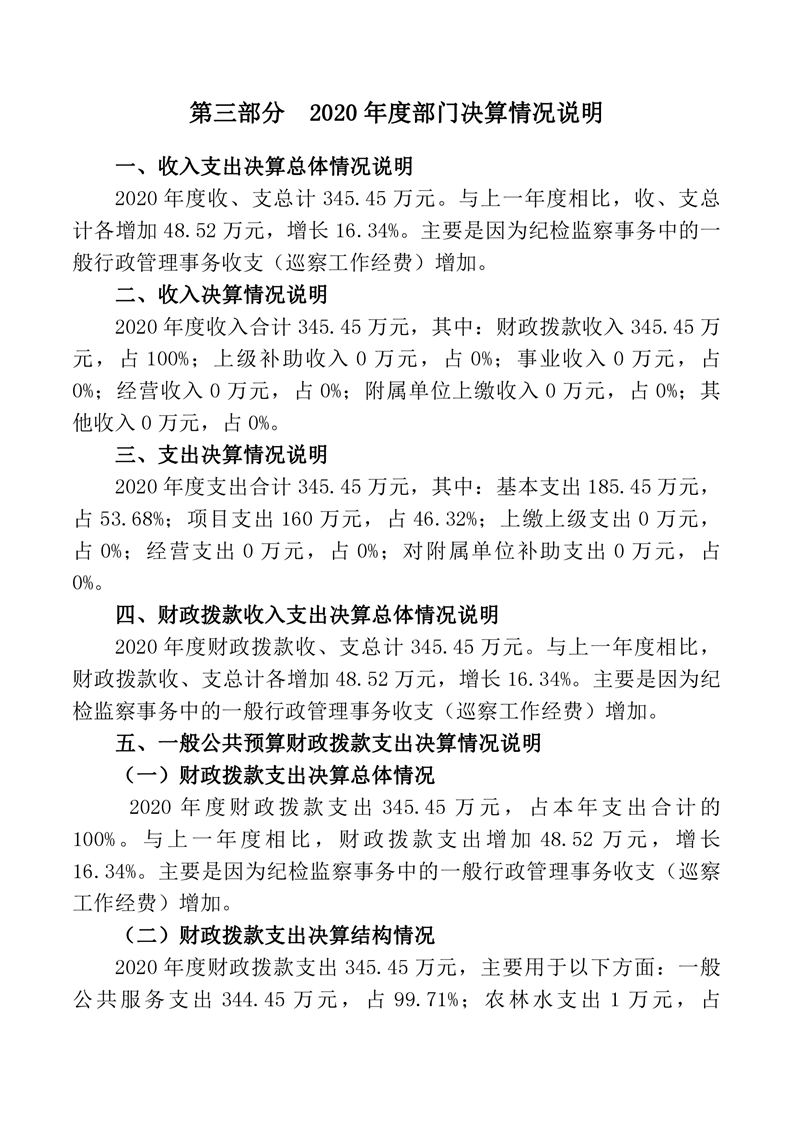 中共桃江县委巡察工作领导小组办公室2020年度部门决算公开说明