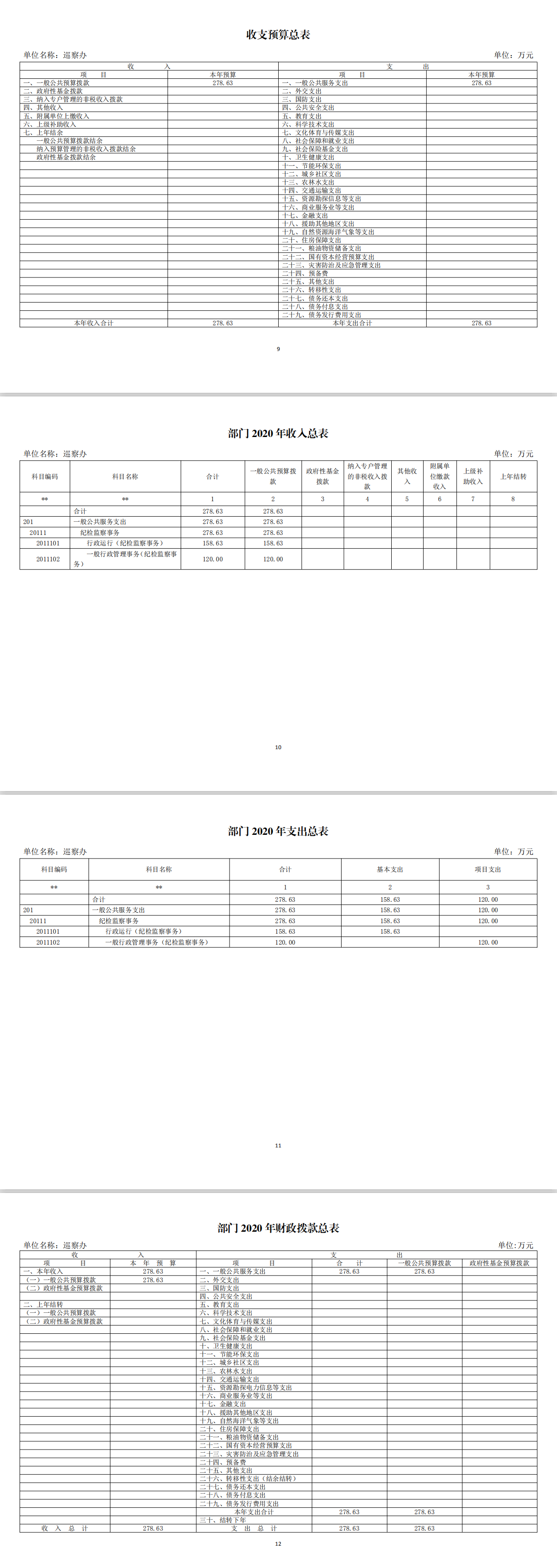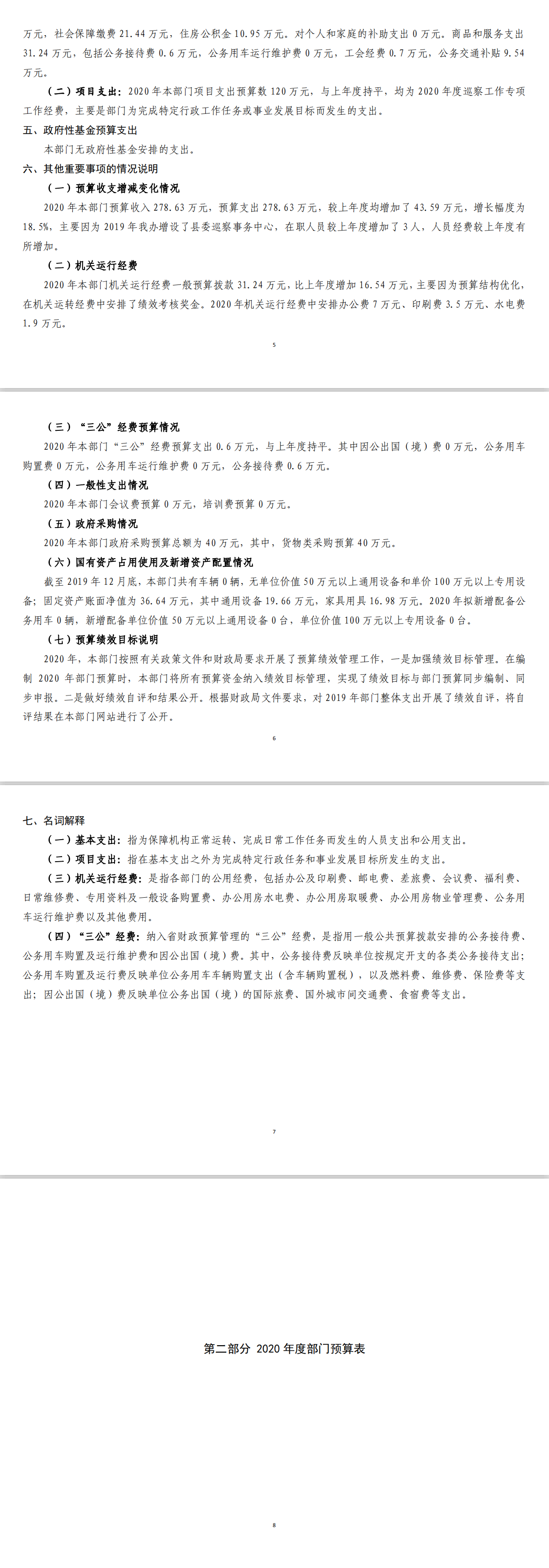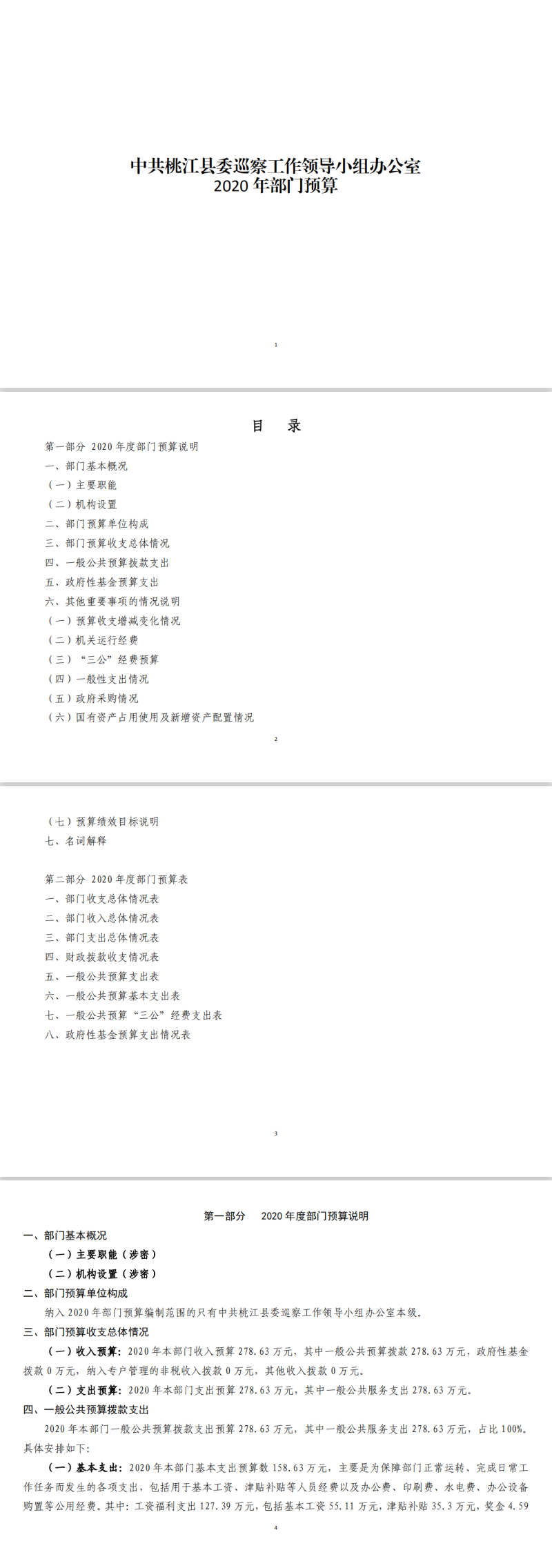 中共桃江县委巡察工作领导小组办公室2020年度部门预算