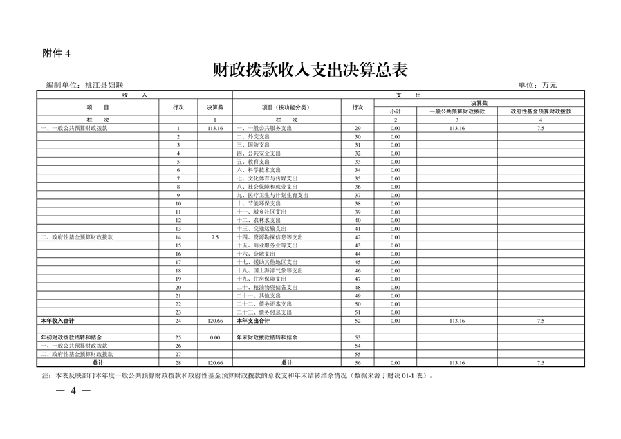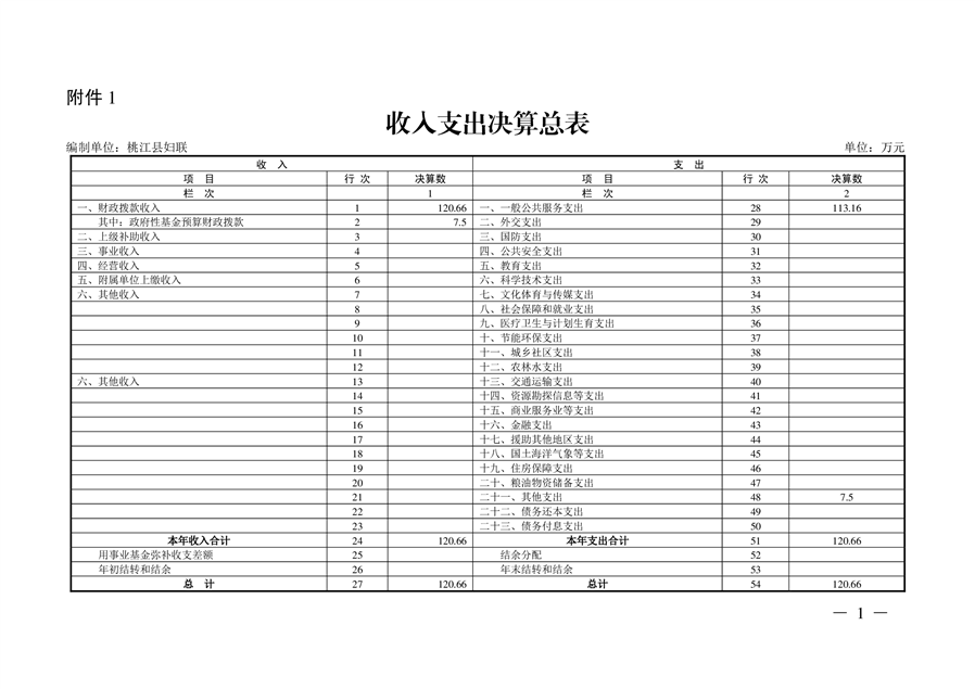 全年支出合计 120.66 万元。其中:一般公共服务支出113.16 万元,其他支出 7.5 万元。