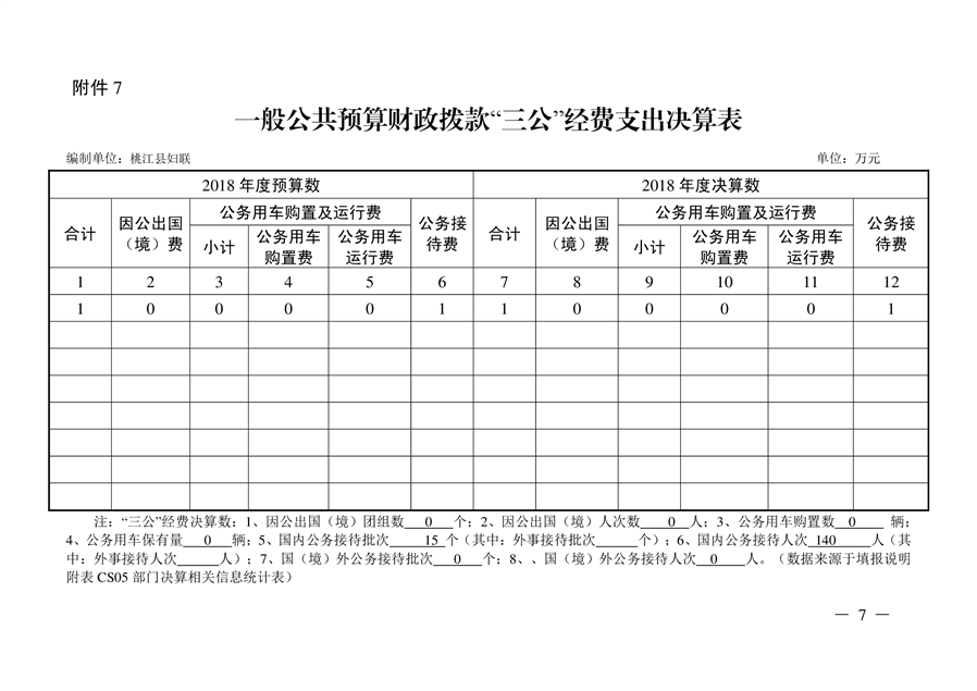 七、一般公共预算财政拨款“三公”经费支出决算表