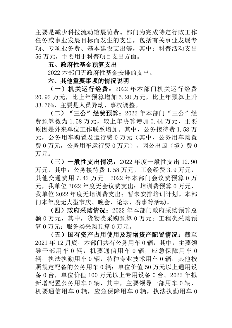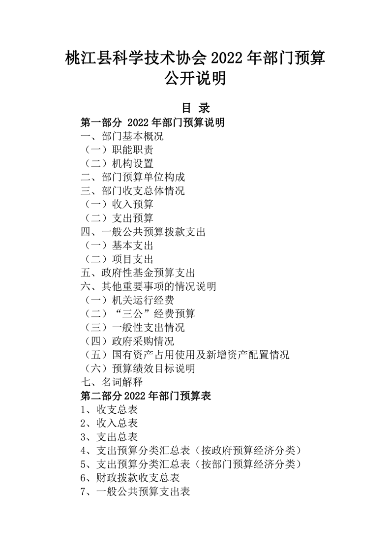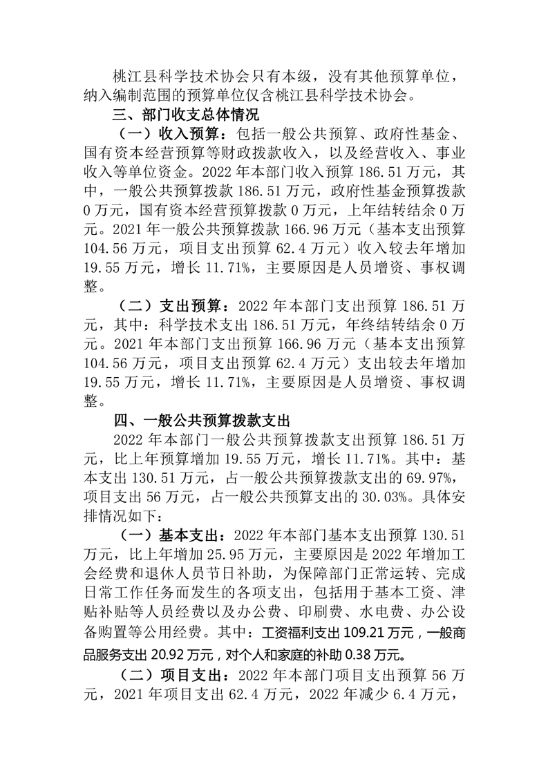 桃江县科学技术协会2022年部门预算公开说明