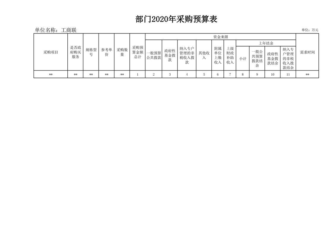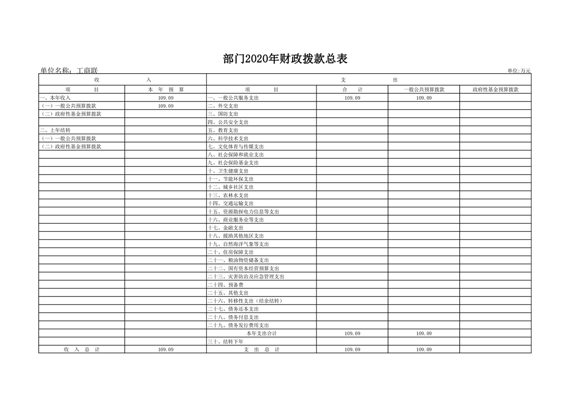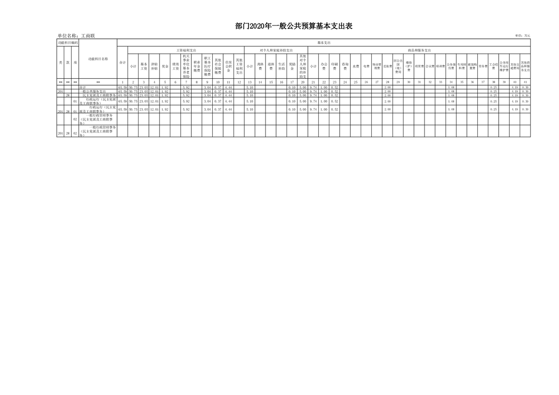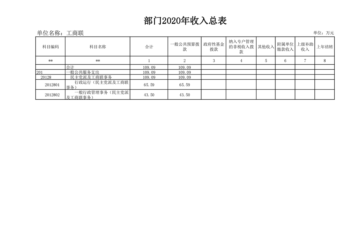 2020年县工商联部门预算为县工商联本级预算汇总情况。收入为一般公共预算收入;支出既包括保障机关基本运行的经费,也包括招商引资、商会建设、非公党建等专项经费。