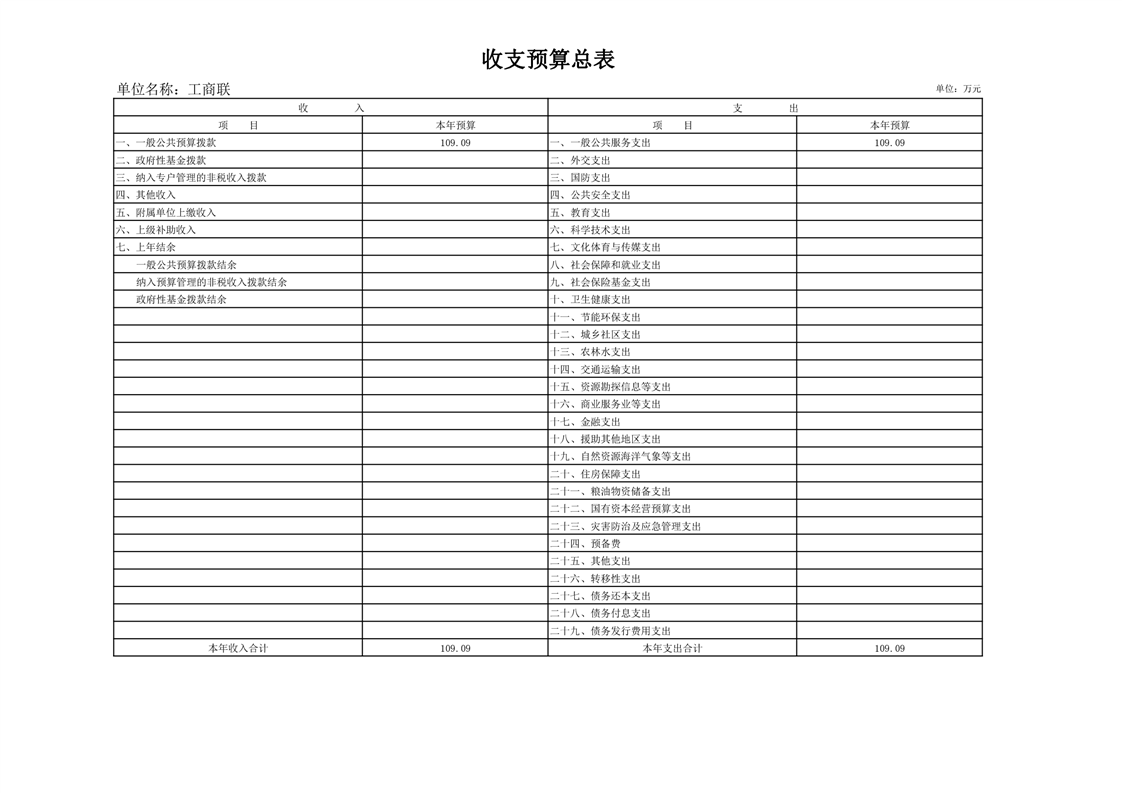 (一)收入预算。2020年年初预算数109.07万元,全部为一般公共预算拨款。收入较去年增加1.87万元,因为在职人员增加,工资福利支出增加。