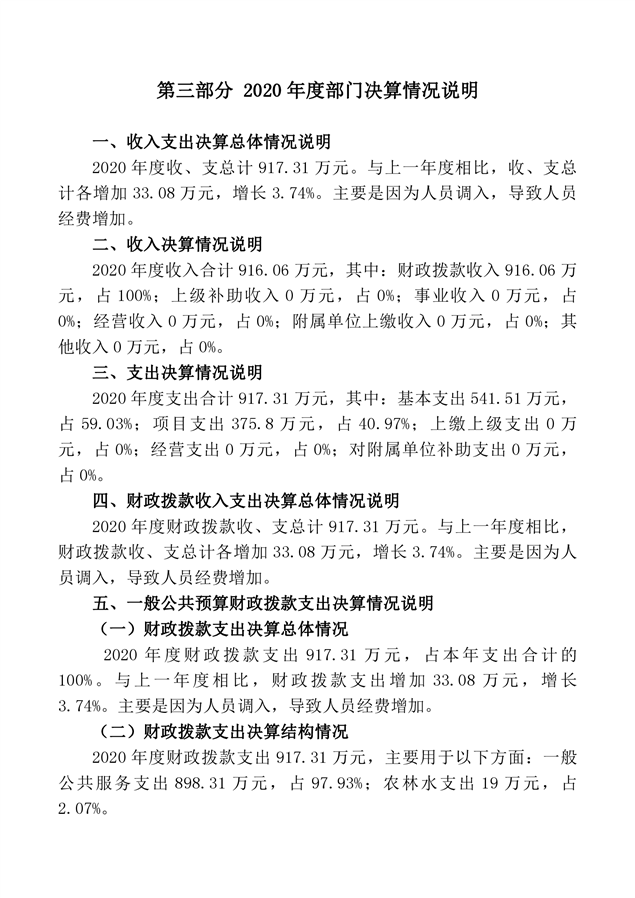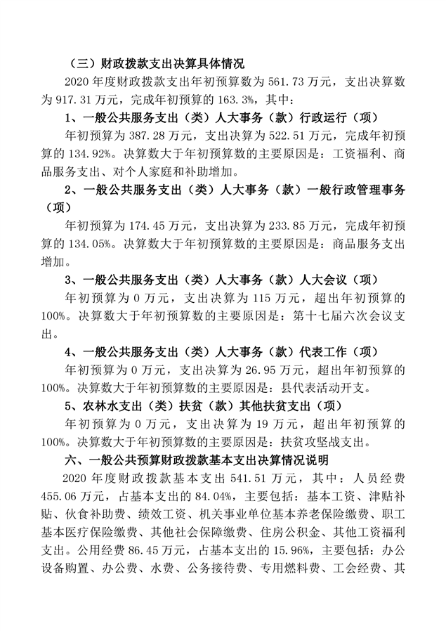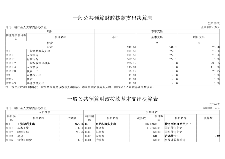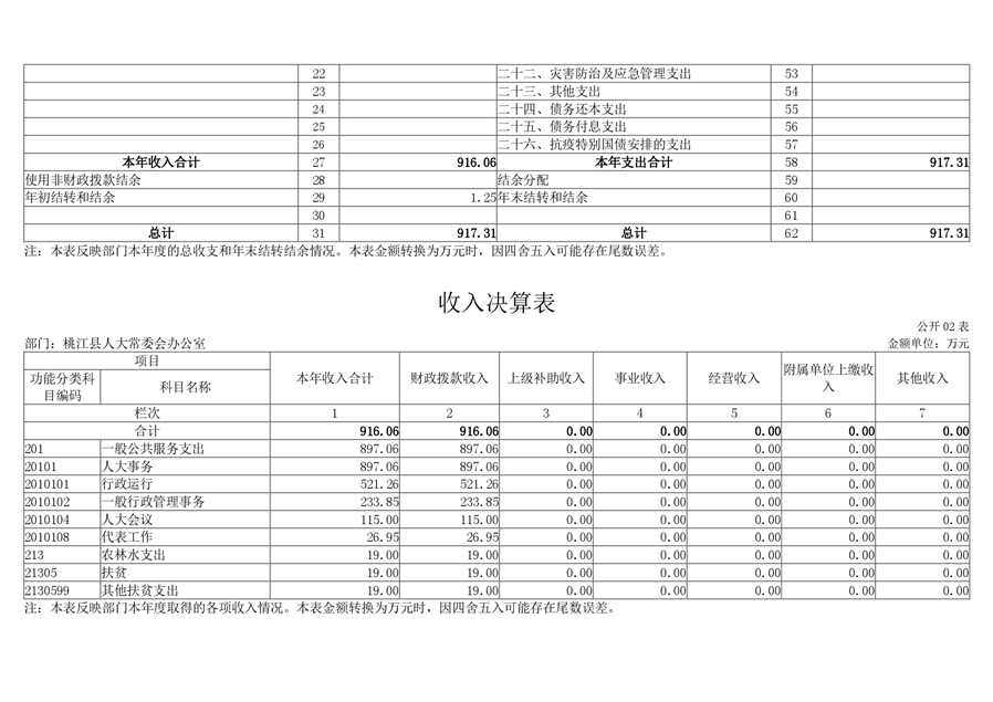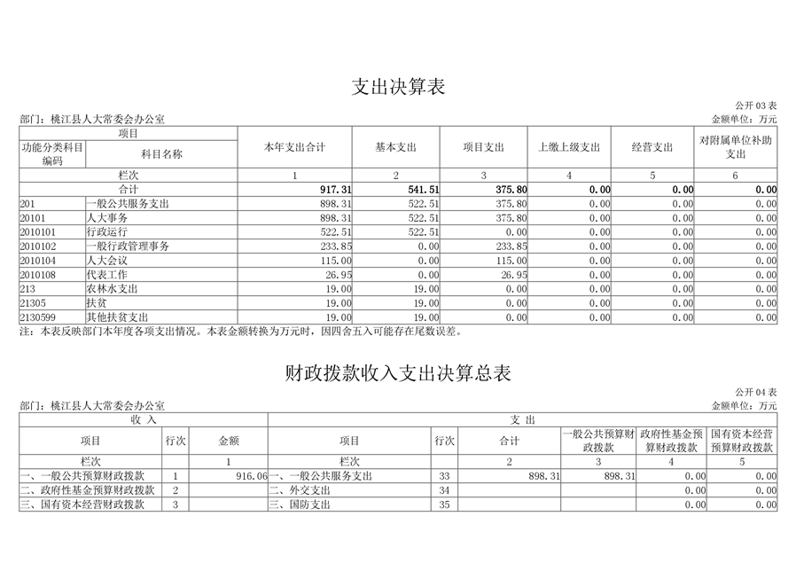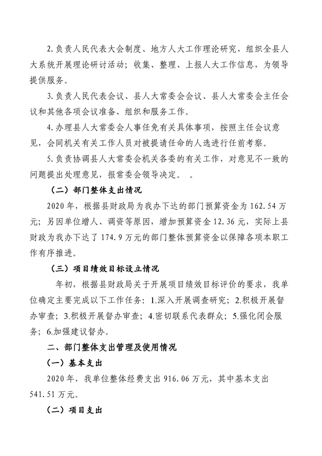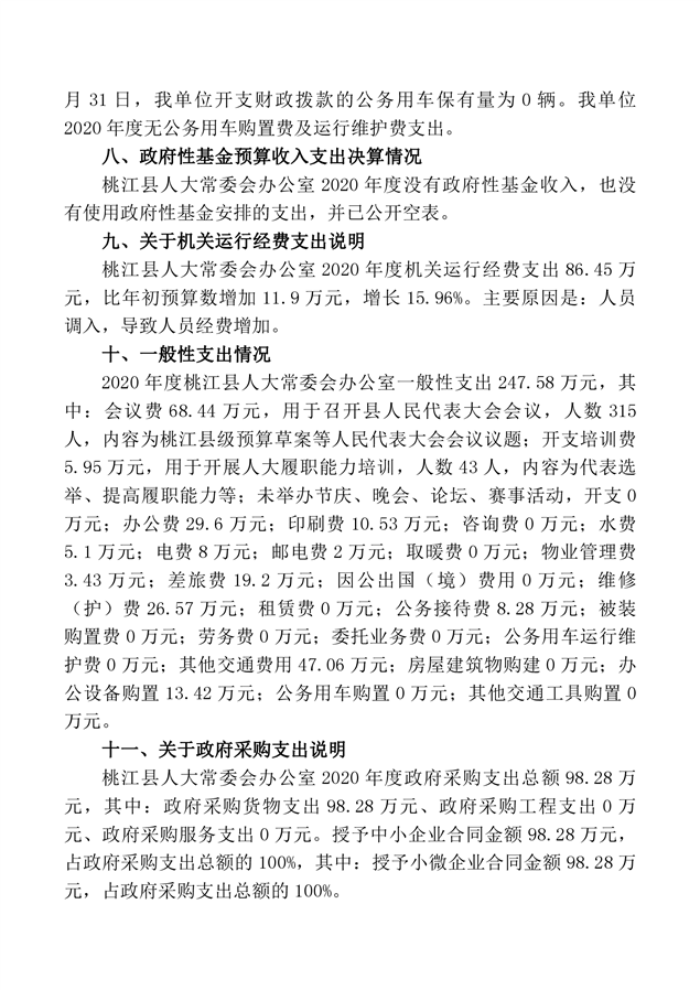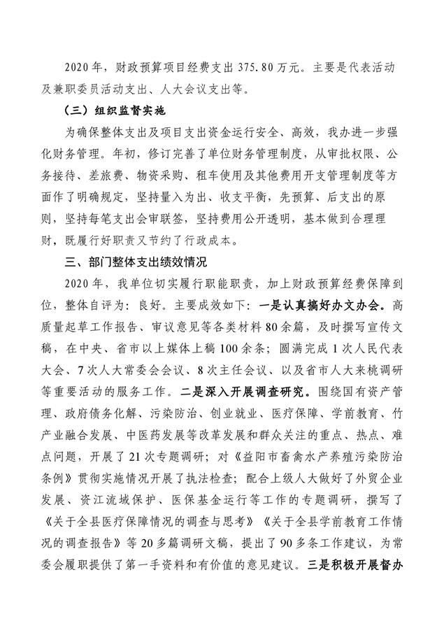 2020 年度桃江县人大常委会办公室部门决算
